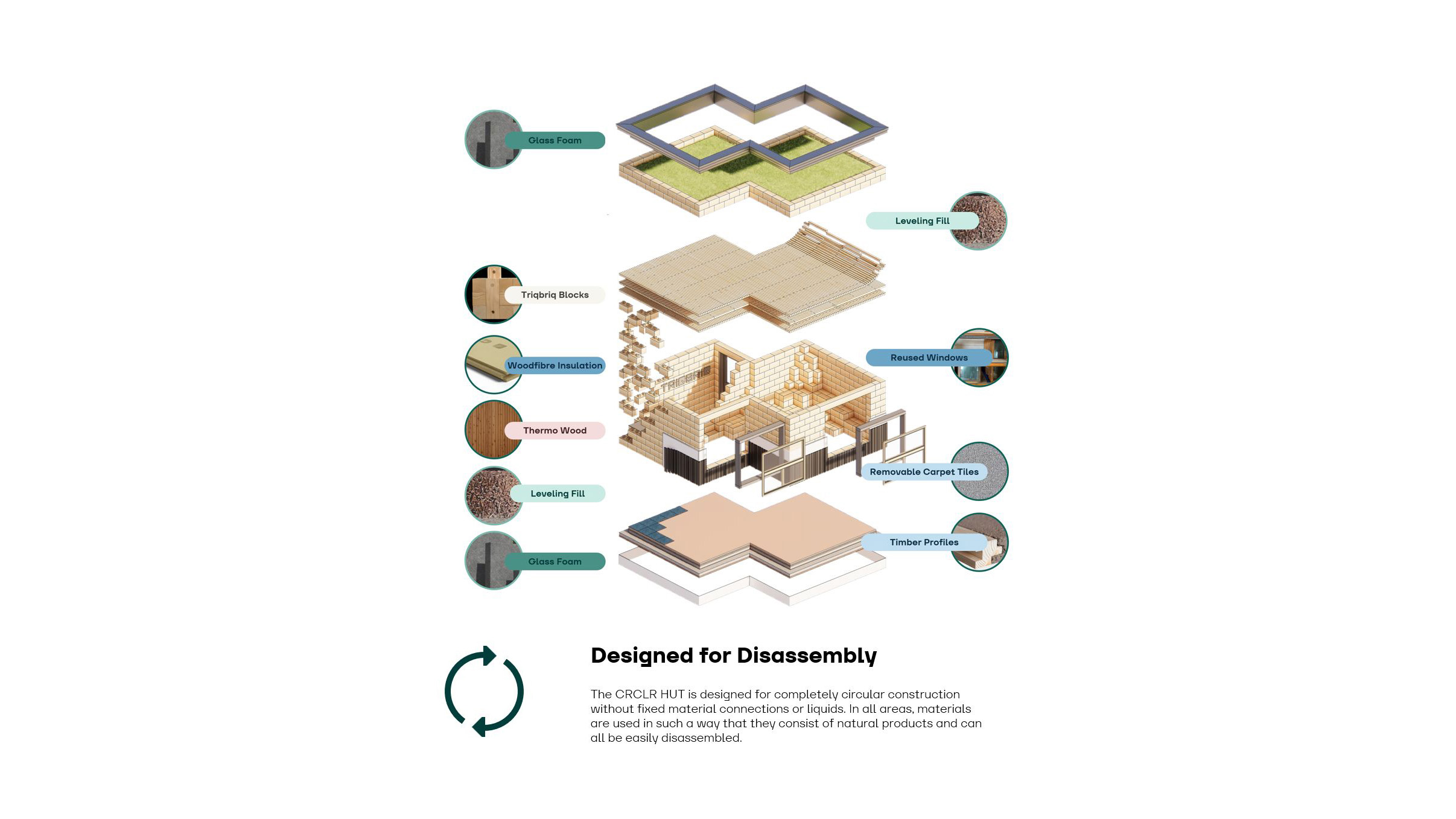 In essence, the CRCLR HUT exemplifies the shift toward a sustainable, circular economy in construction, setting a new standard for future building practices.