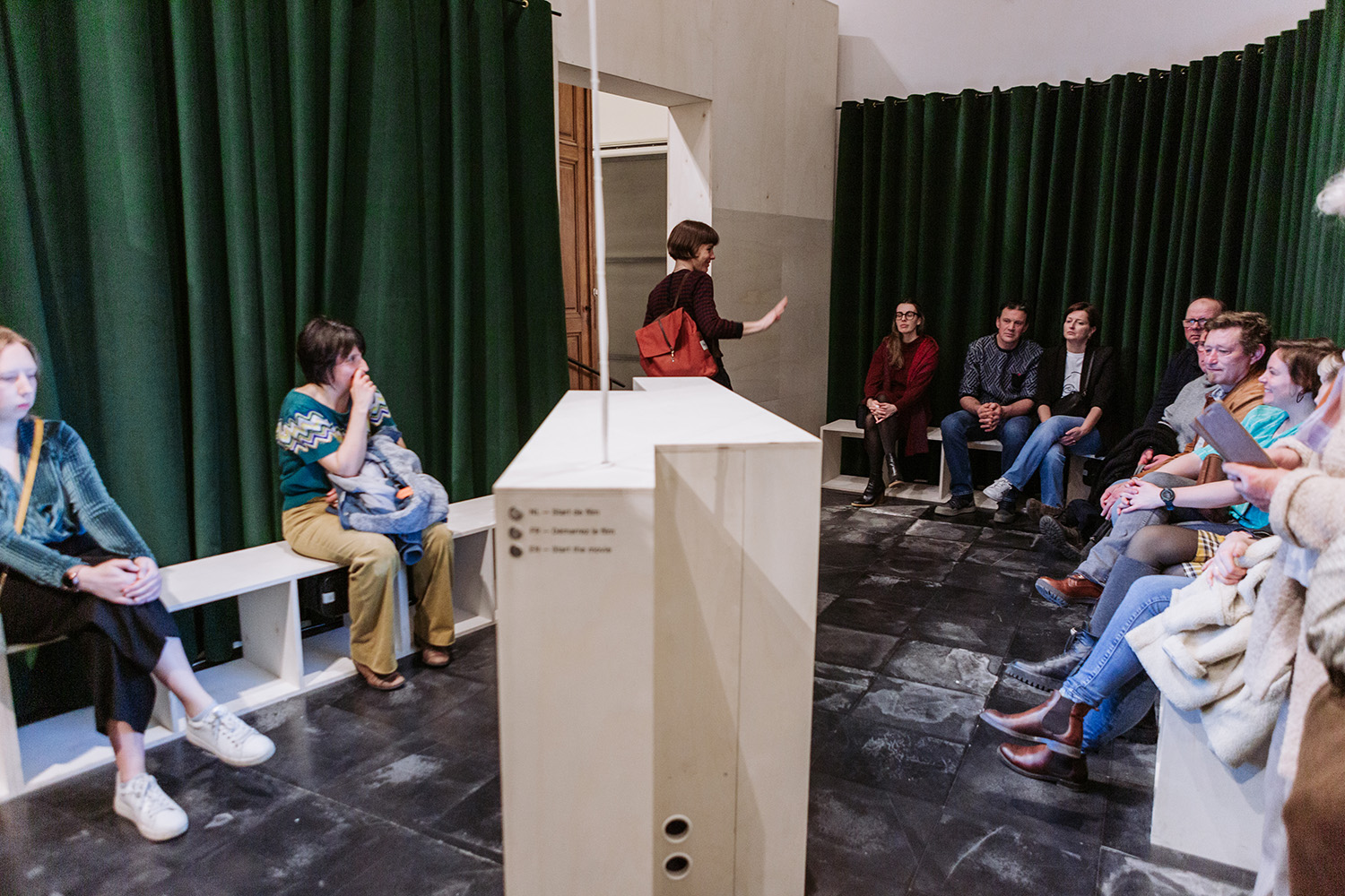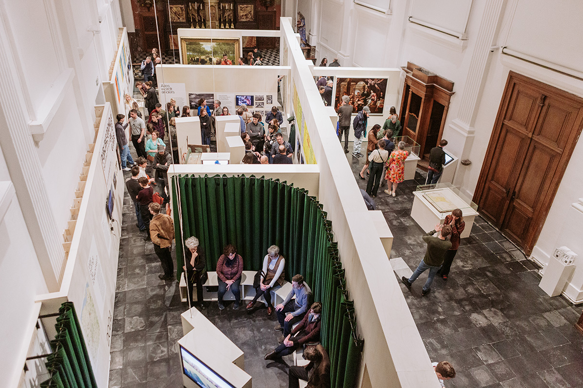 The exhibition took place in a stunning 280-square-meter church, part of STAM. This location was symbolic, as the church was once part of the Bijloke Abbey, a medieval charity institution tied to the origins of Ghent’s agricultural holdings. This location offered a unique setting that deepened the visitor’s connection to the story of the land. To enhance the visual experience, the scenographer designed imposing walls which mirrored the church's architecture, towering over visitors. Placed diagonally, they divided the space into four rooms, gradually building tension and reinforcing the exhibition’s narrative arc. The final room, enclosed by a curtain and equipped with a bench, invited visitors to watch a documentary and engage in debate.