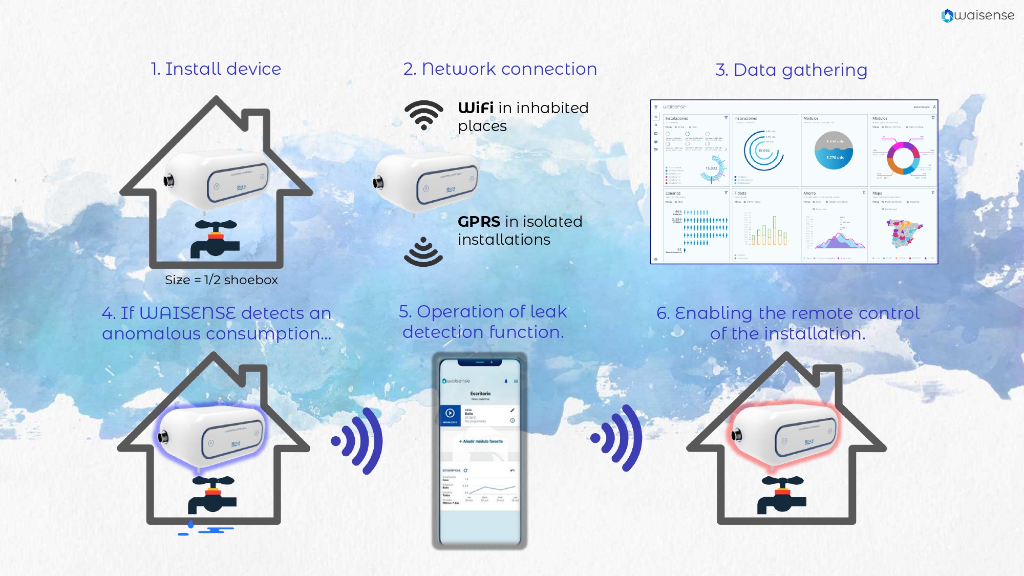 WAISENSE is an innovative cyber-physical solution (IoT platform/app, open API, and devices) designed to improve water efficiency in residential and industrial facilities. By increasing awareness of water consumption and providing real-time data, WAISENSE seeks to become the European standard for water efficiency in new constructions, making a measurable impact on water conservation improving the quality of life through energy savings, waste reduction and sustainability.