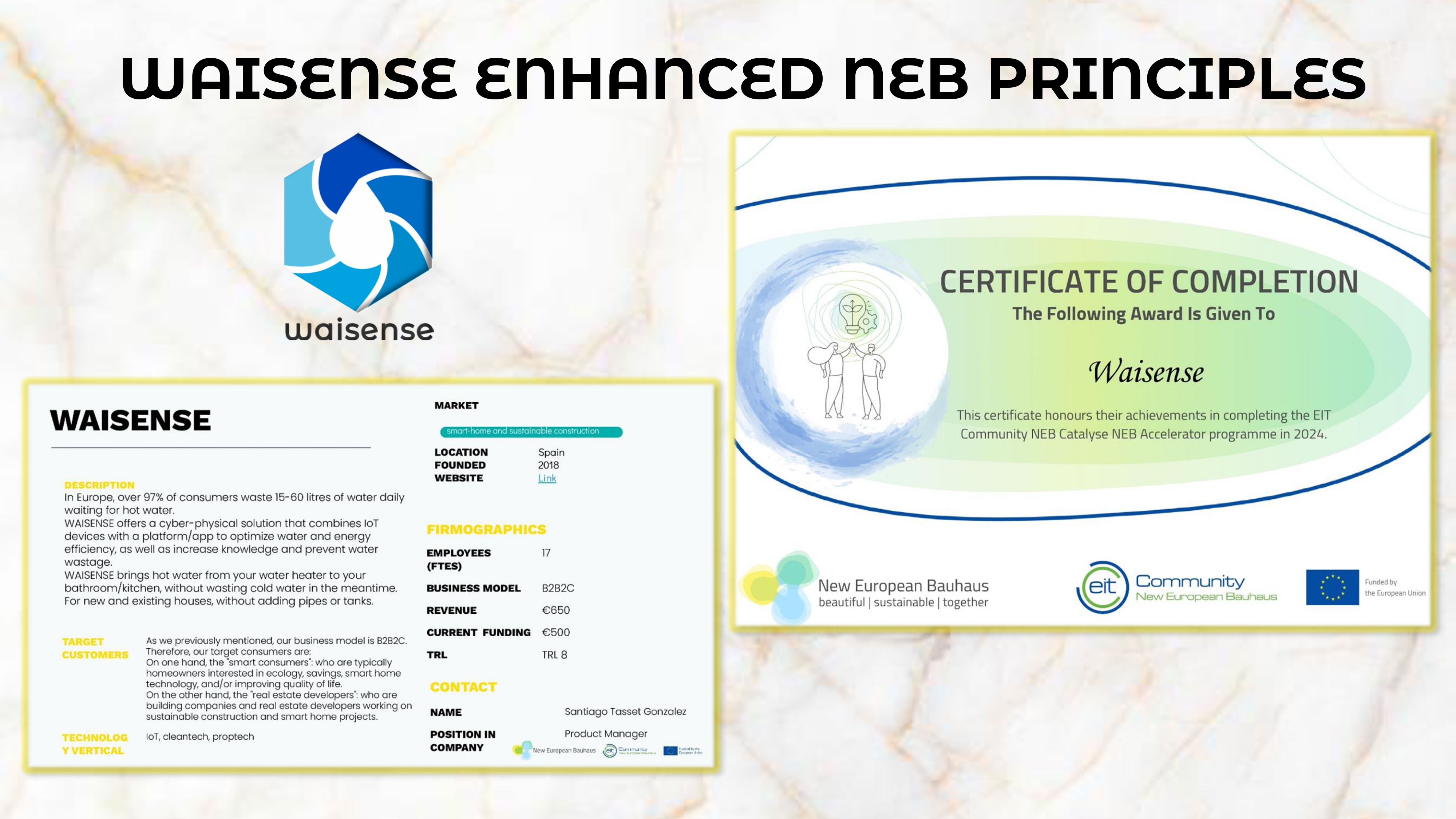 WAISENSE embodies the New European Bauhaus values by combining aesthetics, sustainability, and inclusivity, offering an innovative, eco-friendly solution accessible to all.