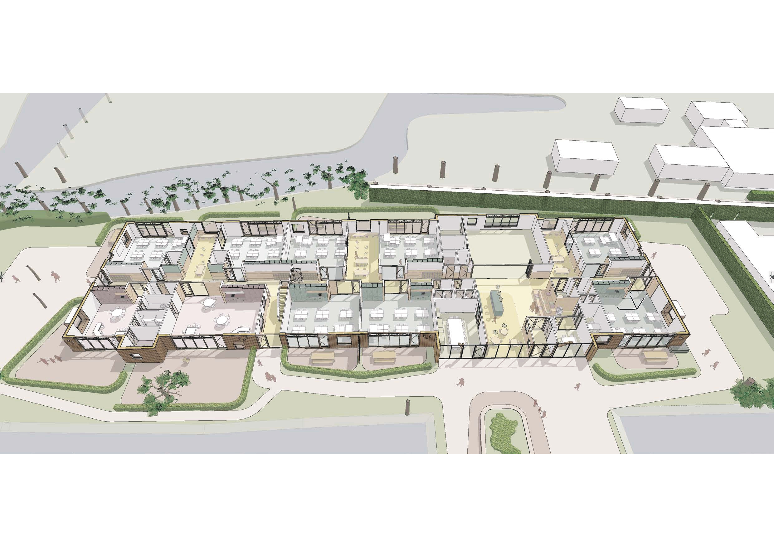 Sustainability has been addressed through a circular design framework. The project uses Total Cost of Ownership (TCO) calculations, which leads to cost-effective and environmentally responsible solutions. The use of bio-based materials, energy-neutral technologies and modular construction ensures adaptability and longevity.