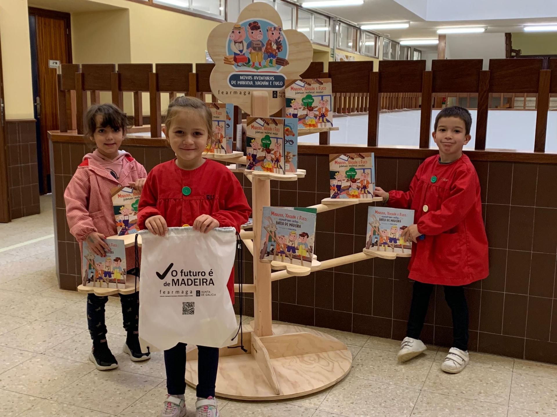 The new story was brought to preschool and primary education classrooms in the four Galician provinces through 23 musical storytelling sessions. It is an immersive experience that combines the transmission of the environmental values of the story, music and an approach to products and objects made of wood, so that schoolchildren can see, touch and feel wood.