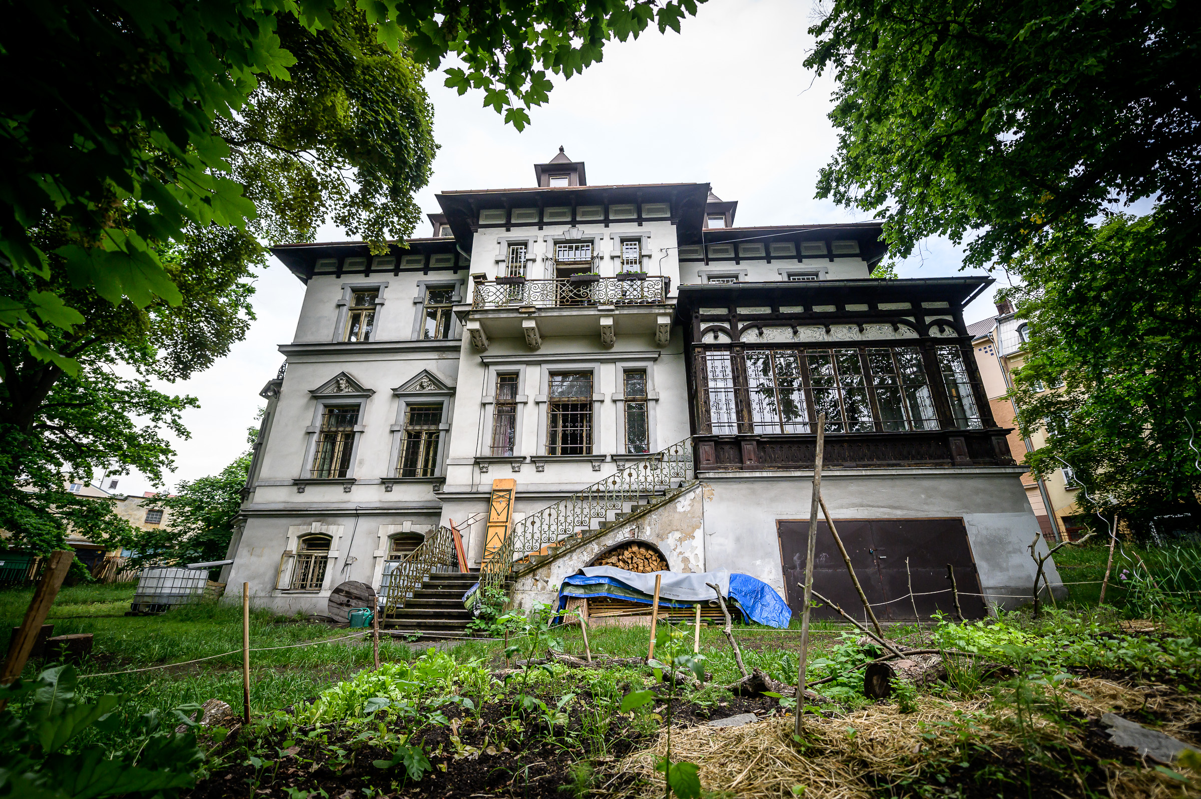 The social cooperative Vzletný racek inhabitates villa Diana, originally the house of a chocolate factory owner Otto Rüger.