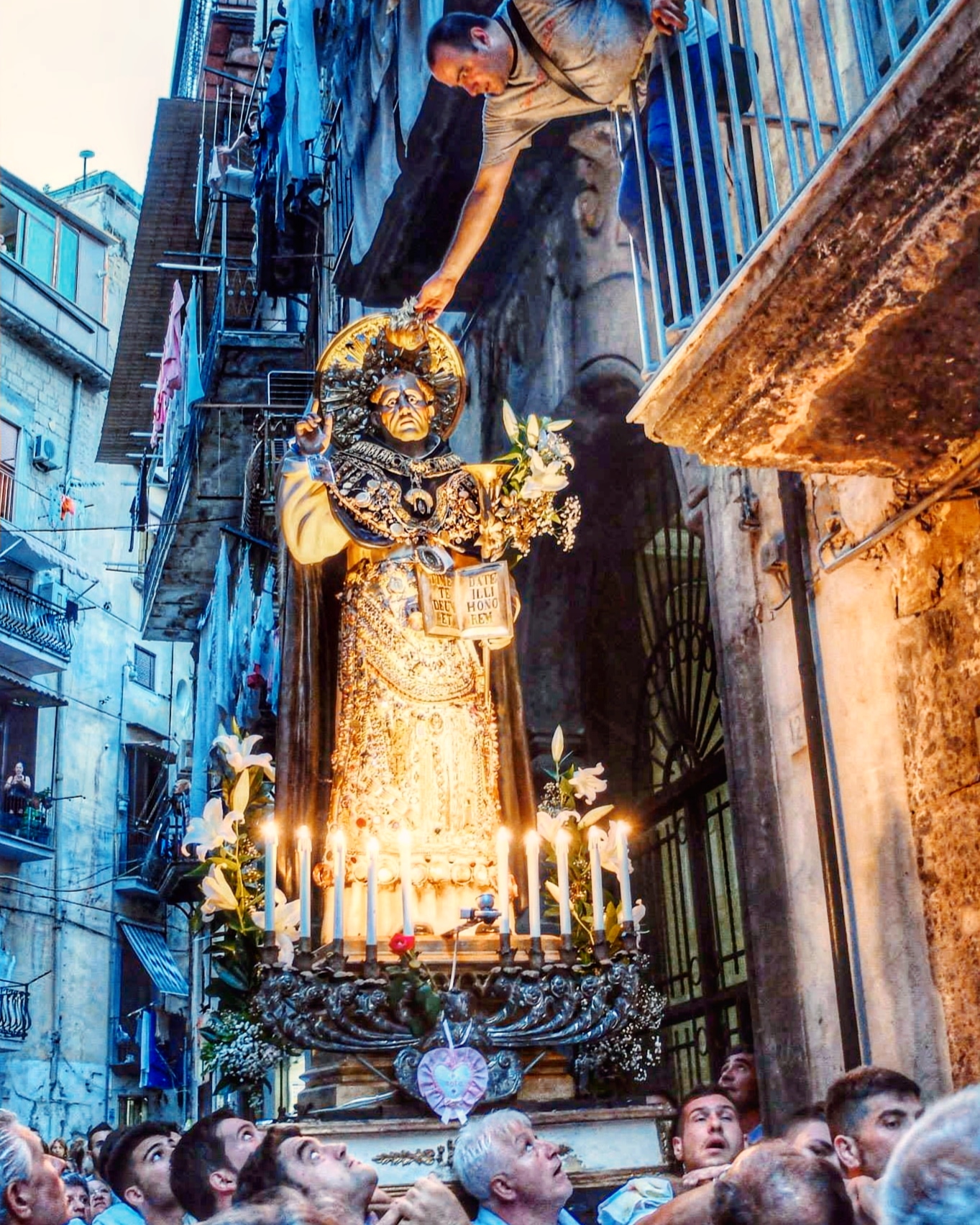 In 2019 the international artist Jago decided to donate his sculpture named “Il Figlio Velato” to the neighbourood and its citizens. During the quarantine, in 2020, Jago decided to establish his laboratory in the Rione, in one of the Rione Sanità's churches, S. Aspreno ai Crociferi (it began “Jago Museum” from 2022) This 17th century church has been finally reopened after more than 40 years. The artist created two other works inspired by the events of the neighbourhood, which had a huge international echo and attracted tourists from all over the world: “Look down” and "La Pietà”.
