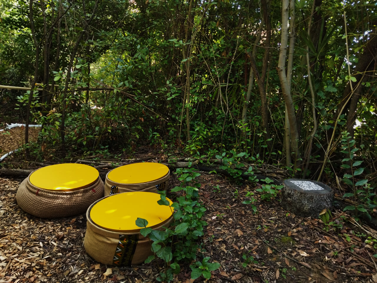 Since the project is mainly a site-specific intervention, the replicable and transferrable elements relate more to the approach and the methodology that was implemented, but also include some individual design solutions. The results from the combination of permaculture values, accessibility elements and more elegant design approach can be viewed as examples of this valuable interdisciplinary and dialogical process of in-situ design and implementation. The constantly negotiable nature of the result is also a key element that relates to this process. Regarding more specific solutions, we can mention the circular arrangement of the sitting area, adapting to the terrain’s slope by creating multiple levels that can in turn accommodate people with different height, age or ability. The moveable sitting options, the poufs, are another element that incorporates adaptability, creativity and sustainability, and could potentially be replicated in any other space with similar characteristics and priorities. At the same time, the inventive inscription of QR codes in the environment, by using already cut trunks, which could also double as sitting options, offers a technique that can give an extra level of information and experience to a natural environment, without implementing more traditional labeling systems that would be more imposing to the landscape.