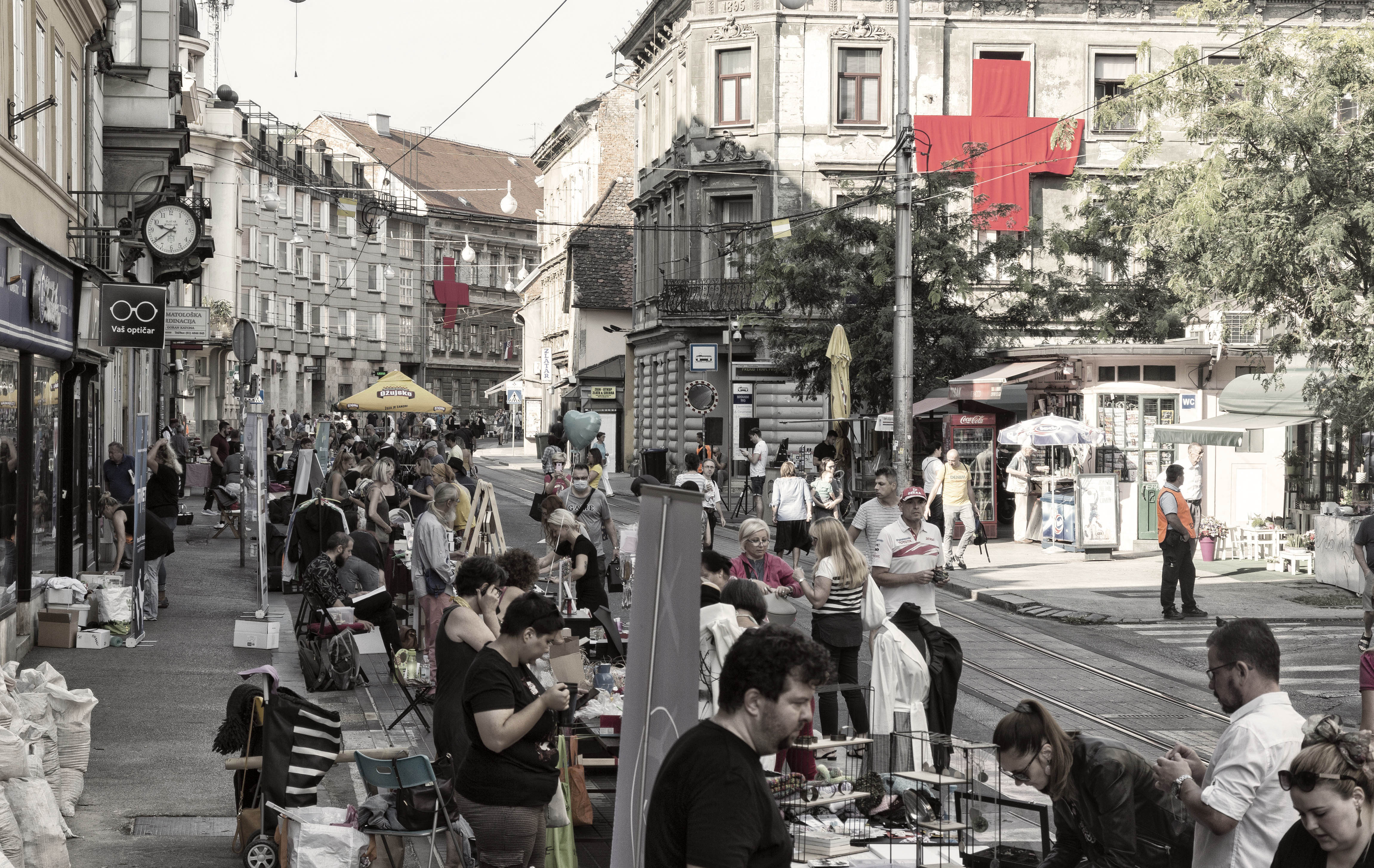 Through 11 urban exhibitions, Galerija Ilica merges historical and contemporary aesthetics, addressing pressing social issues and collective memory. The 2020 Red Crosses action on earthquake-damaged buildings symbolized resilience and solidarity, while ongoing exhibitions reanimate facades and vacant spaces, turning them into open-air art galleries that engage and empower the community.