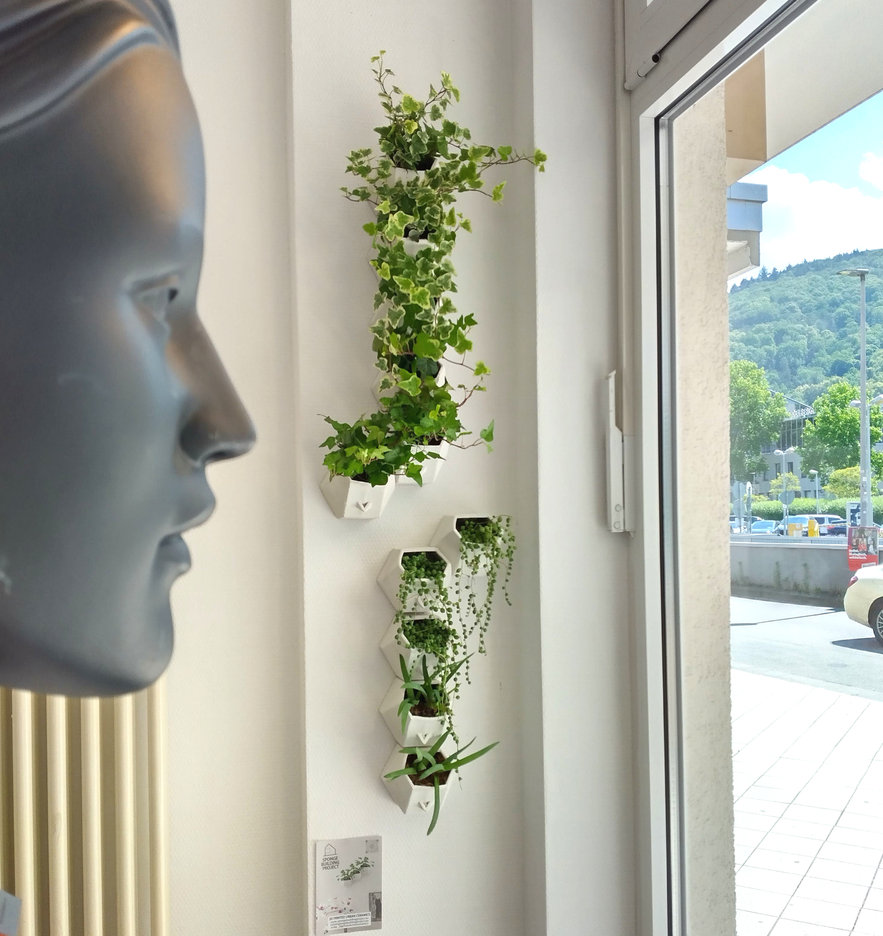 In Heidelberg last year, our Green Wall module project was designed to advance sustainability in urban settings. Its primary objectives were to reduce environmental impact and enhance urban microclimates using eco-friendly, modular design. The system is constructed from 3D-printed ceramic components that are easy to attach to the wall without cement, thereby lowering embodied energy and minimizing construction waste. The dual-chamber design facilitates effective rainwater collection and retention, reducing urban runoff and contributing to natural cooling. Additionally, the ceramic material provides natural thermal and acoustic insulation, improving energy efficiency in built environments. The pilot project demonstrated these sustainability benefits through improved local air quality, moderated indoor temperatures, and positive feedback from participants, positioning the project as an exemplary model for sustainable urban greening that can be scaled and replicated in other cities.