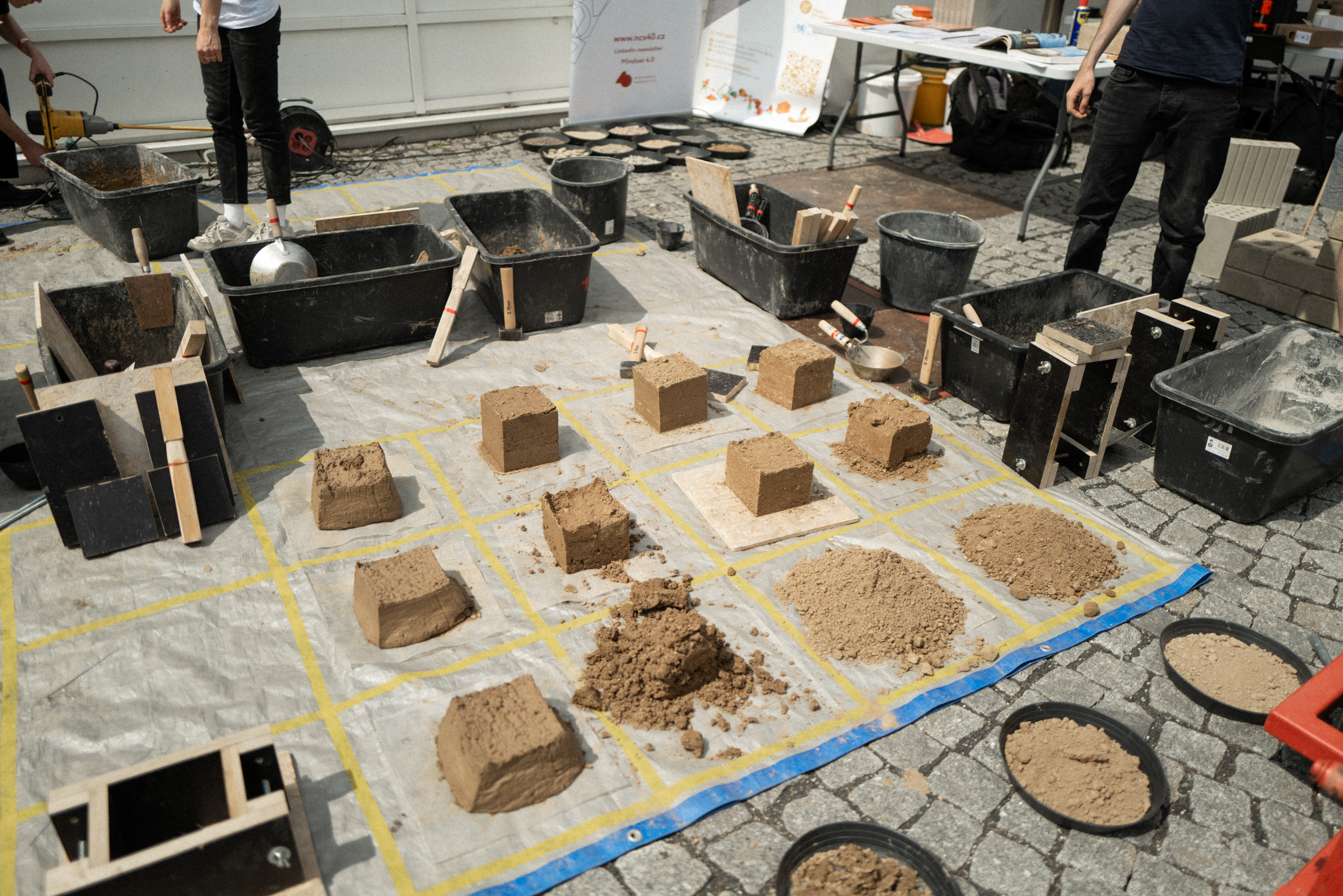 Our project introduces the use of rammed earth in design and architecture to the Czech audience, highlighting its sustainability, aesthetic quality, and unique physical properties. It aims to challenge widespread misconceptions about earth as a material perceived as outdated, aesthetically inferior, or structurally weak. These myths stem from historical use before modern technical solutions, such as proper waterproofing and insulation, were developed. By demonstrating its contemporary potential, we respond to pressing environmental challenges, including climate change and the growing demand for sustainable materials.