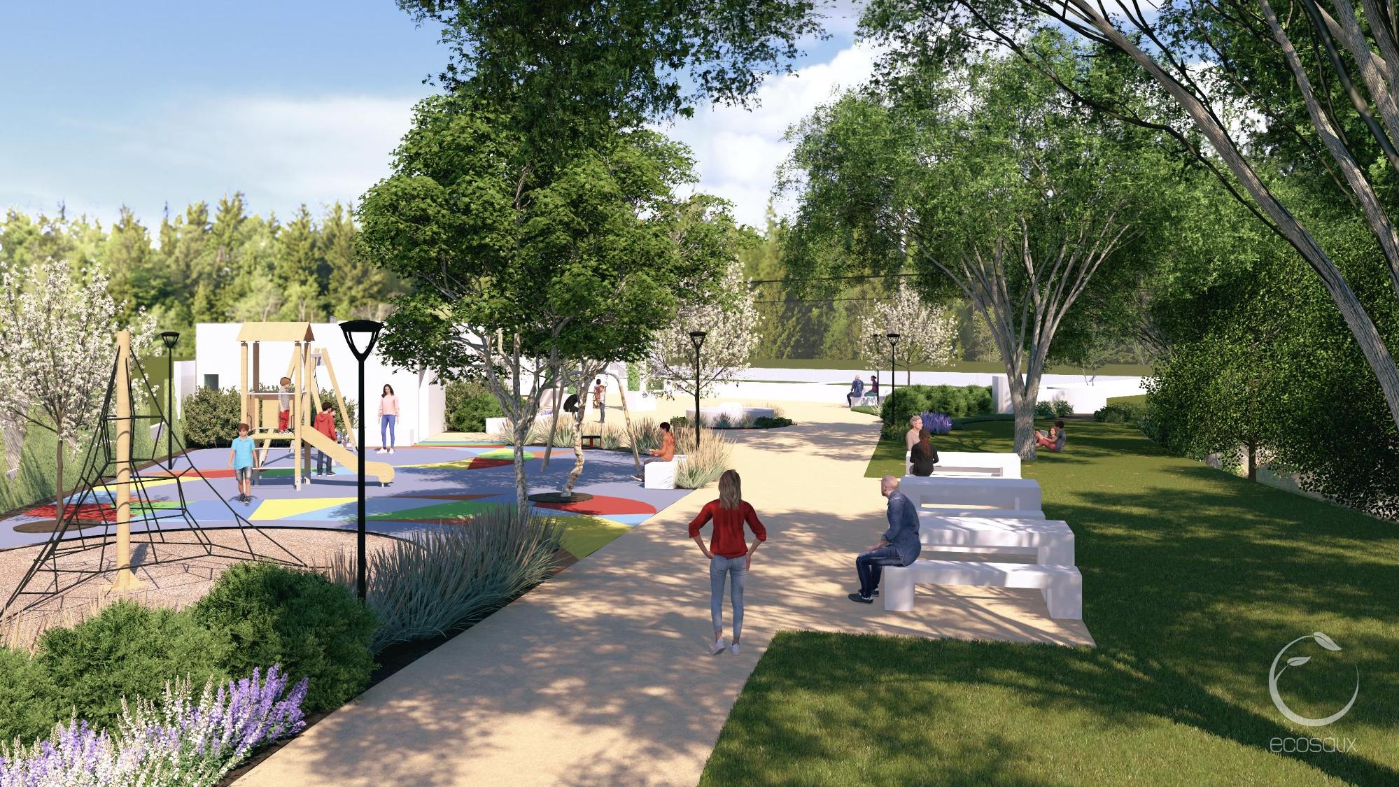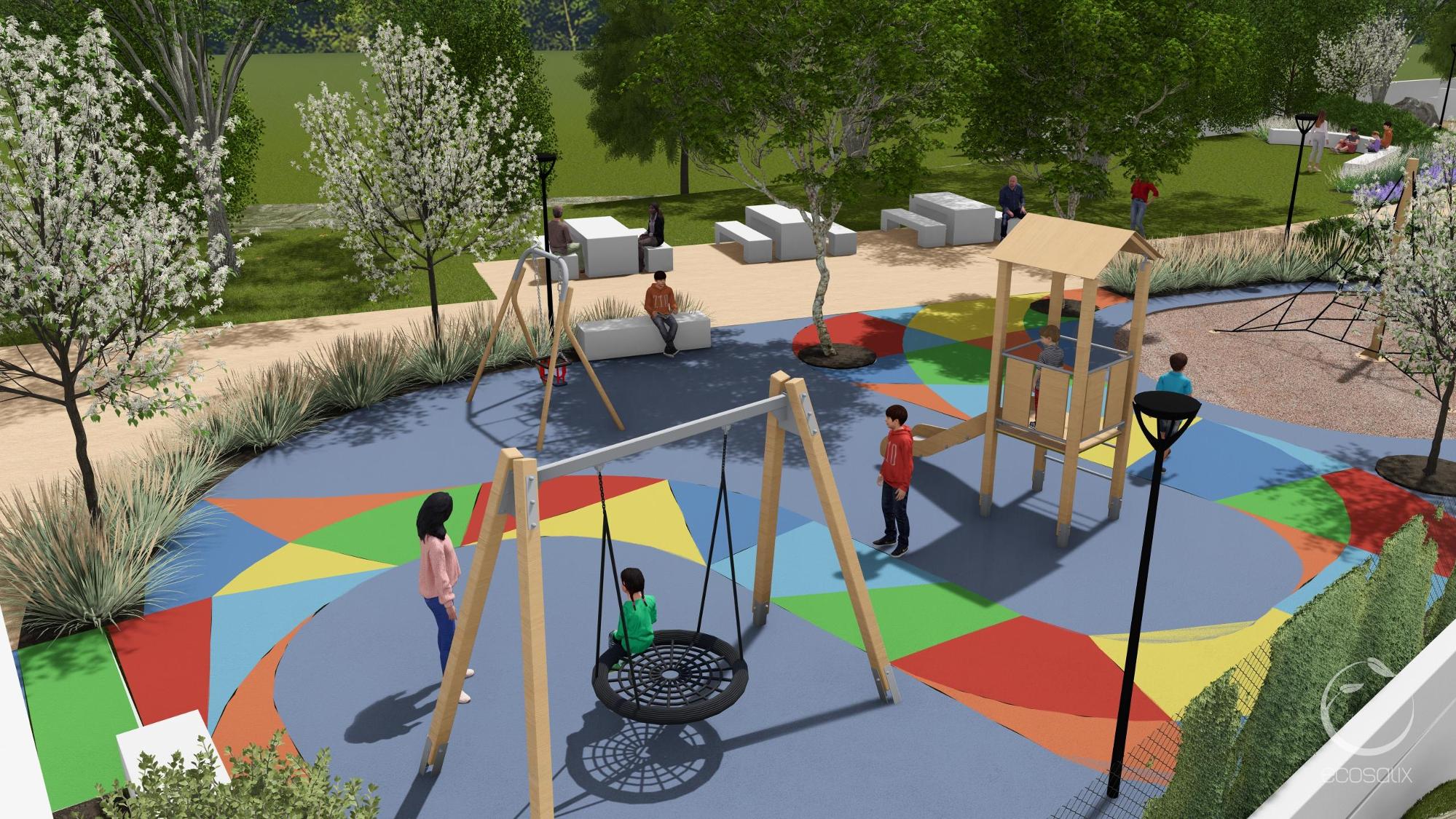 The park is designed as a multigenerational space, where people of different ages can interact. A modern playground will encourage play and socialization among children, while the revitalized sports field will provide a meeting point for youth and adults to engage in active recreation. Seniors will benefit, adding to the proximity to the Social Centre, from shaded areas, accessible pathways, and gathering spaces, ensuring they remain engaged in community life.