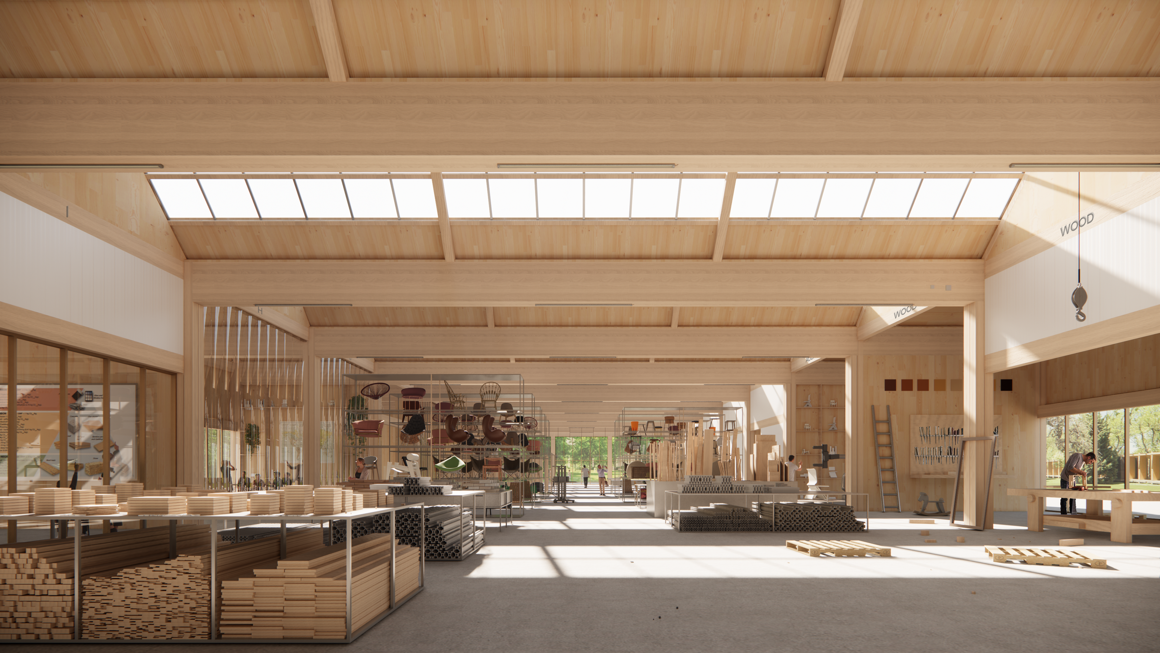 - Reimaging the classic typology of a closed warehouse into an open hybrid building where citizens can see and participate in new processes of remanufacturing;
