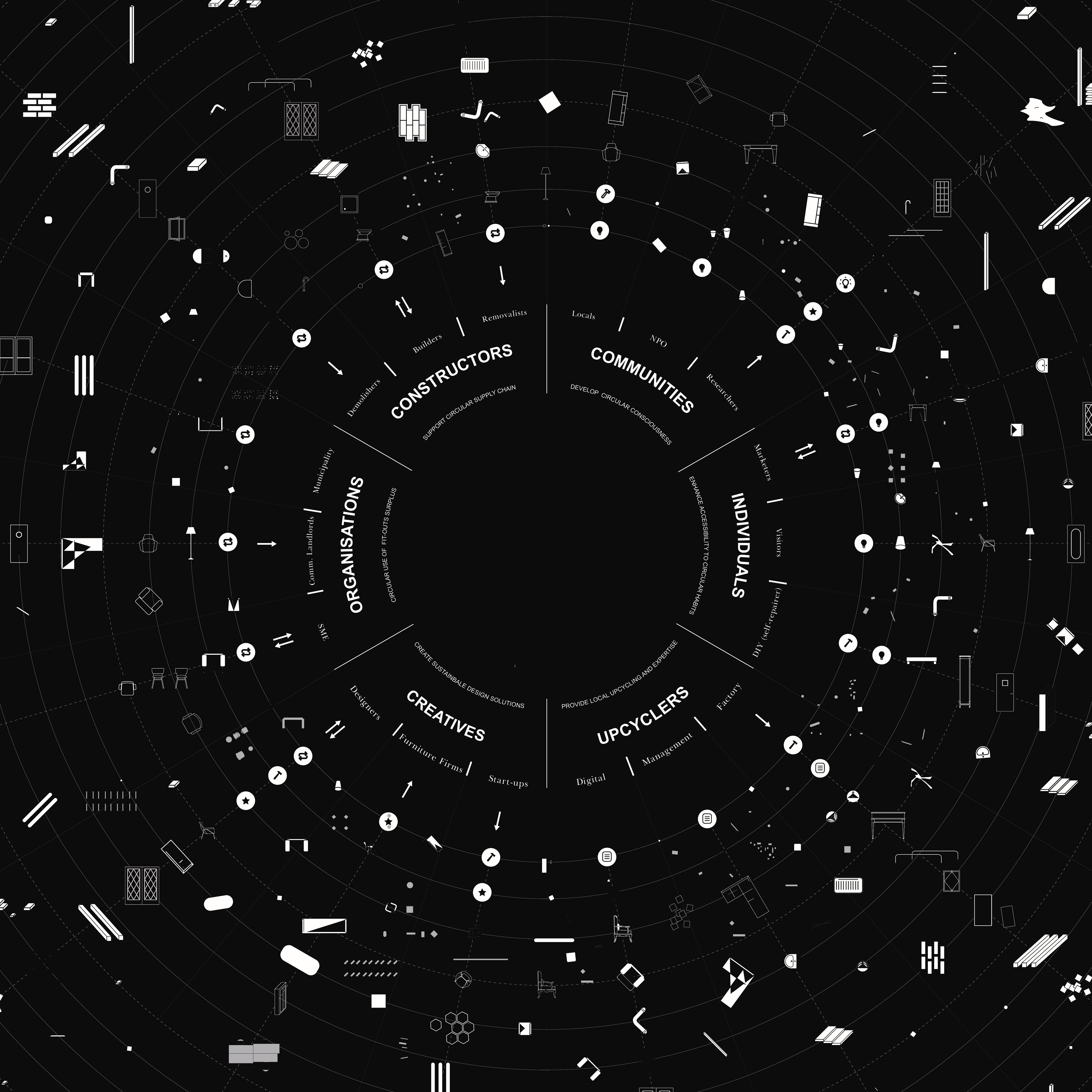 The Upcycling Hub proposes a circular supply chain model for building materials and furniture of neighborhoods and small-scale towns. The main objective is to salvage and then repurpose materials destined for landfill through processes of local upcycling. A network of local actors is brought together, and a physical place is established as the heart of the entire supply chain. This place is called The Upcycling Hub.