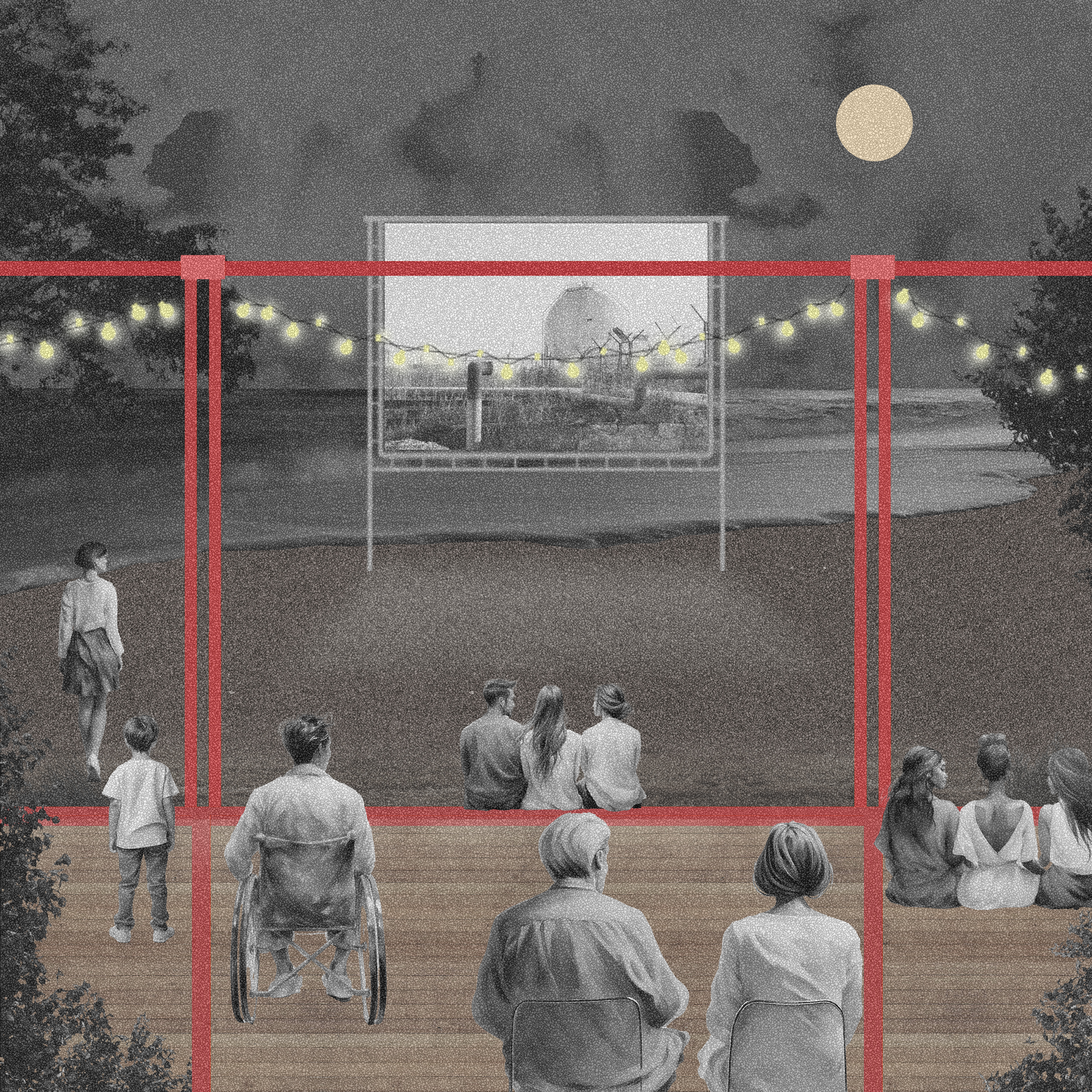 The project proposes an urban degrowth zone and nature-based solutions that transforms the coastal zone of the former industrial site into a thriving wetland ecosystem and a beautiful public space that is able to respond to rising sea levels and extreme weather phenomena.