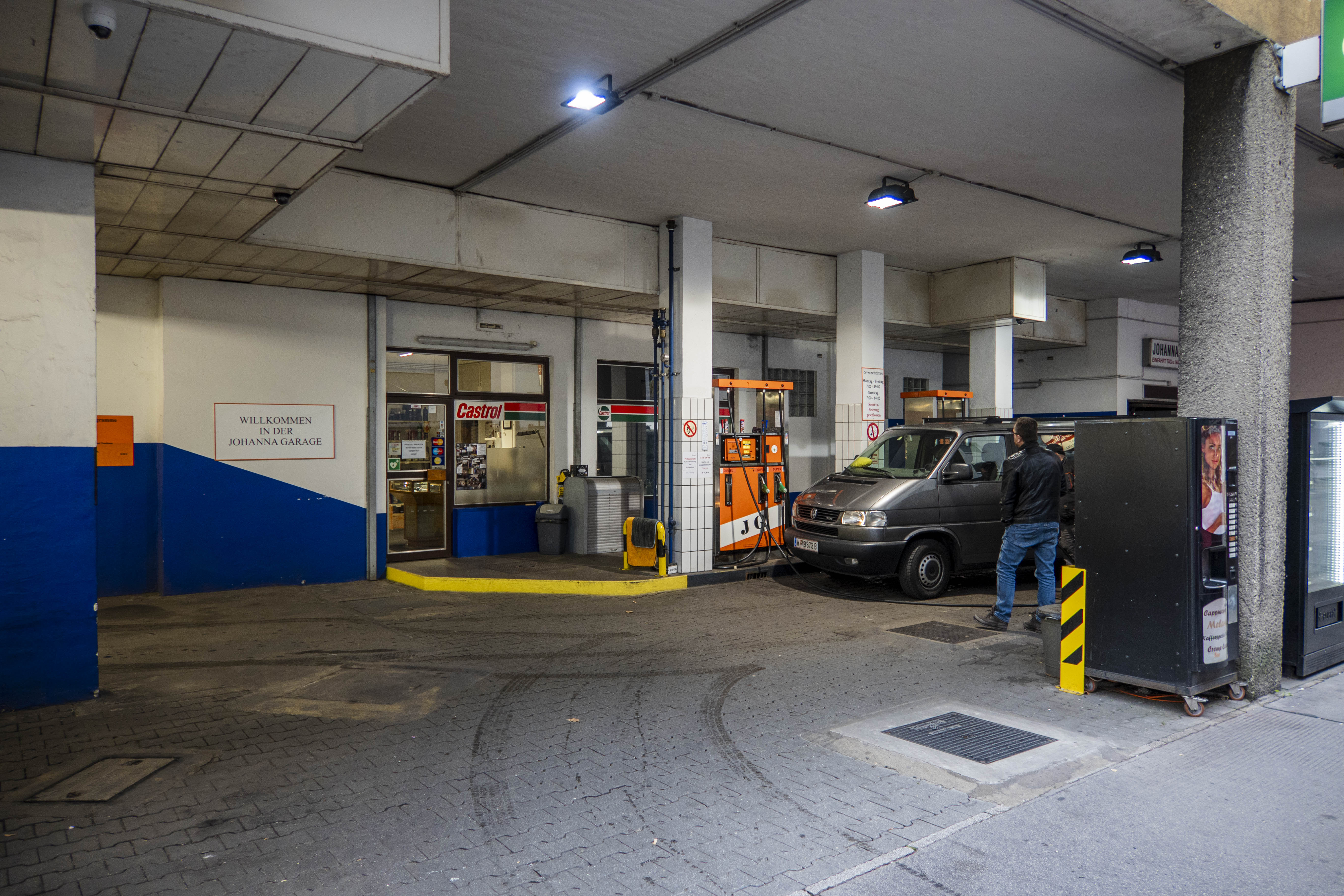 The gas station "Johanna Garage" in Vienna is an old gas station with a beautiful aesthetic. It still tells myths of endless mobility, energy and freedom.