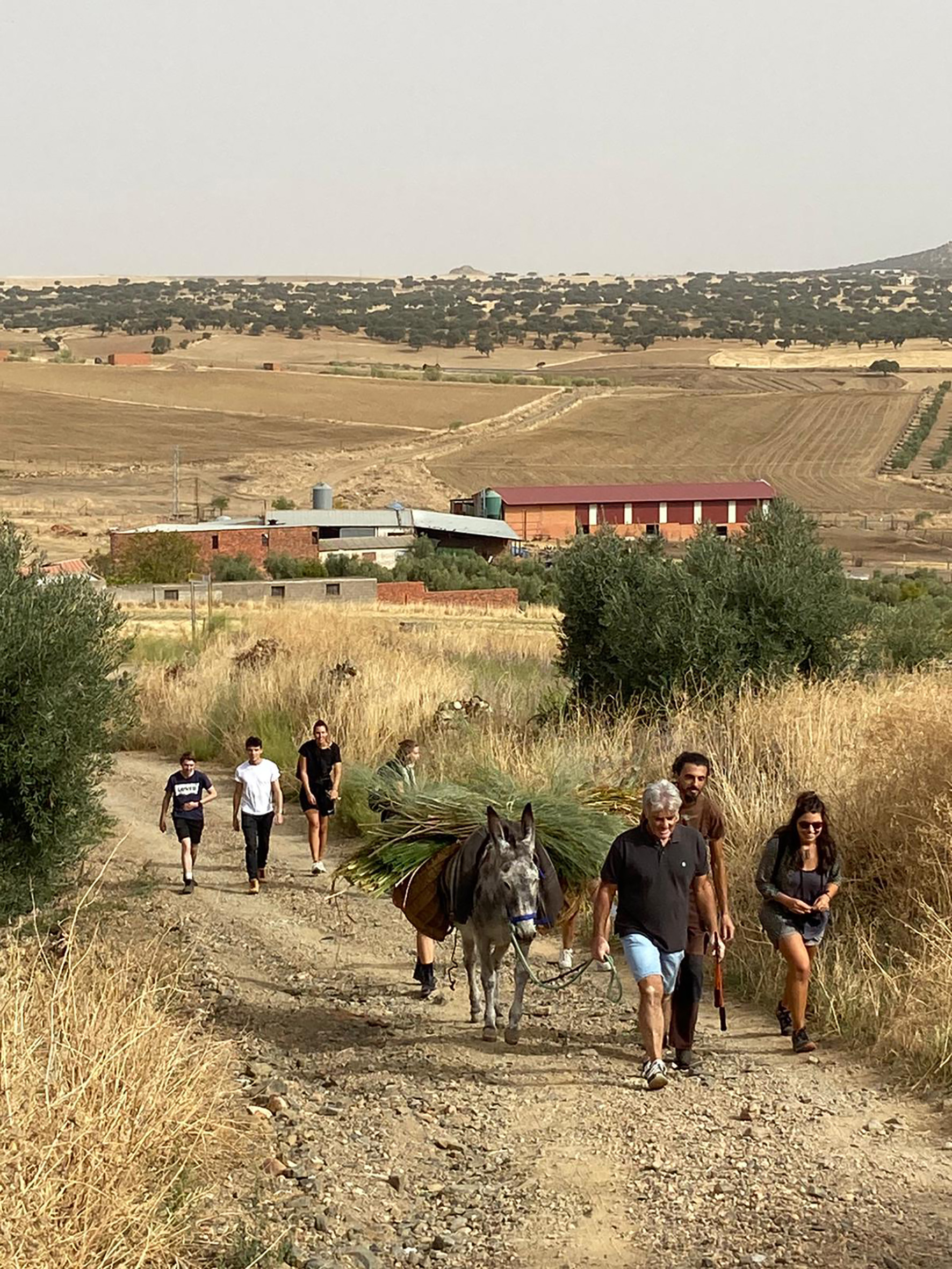 A local group of bio-construction experts played a key role in organizing material collection, storage, and the building process of the two chozos. Additionally, researchers on cohabitation introduced a new perspective, explaining the relationship between animals and human spaces, shifting the anthropocentric view of architecture. The Municipal Environmental Officer of Cabeza del Buey guided the team through the local ecological system and biodiversity, providing expertise that enriched the project’s environmental awareness.