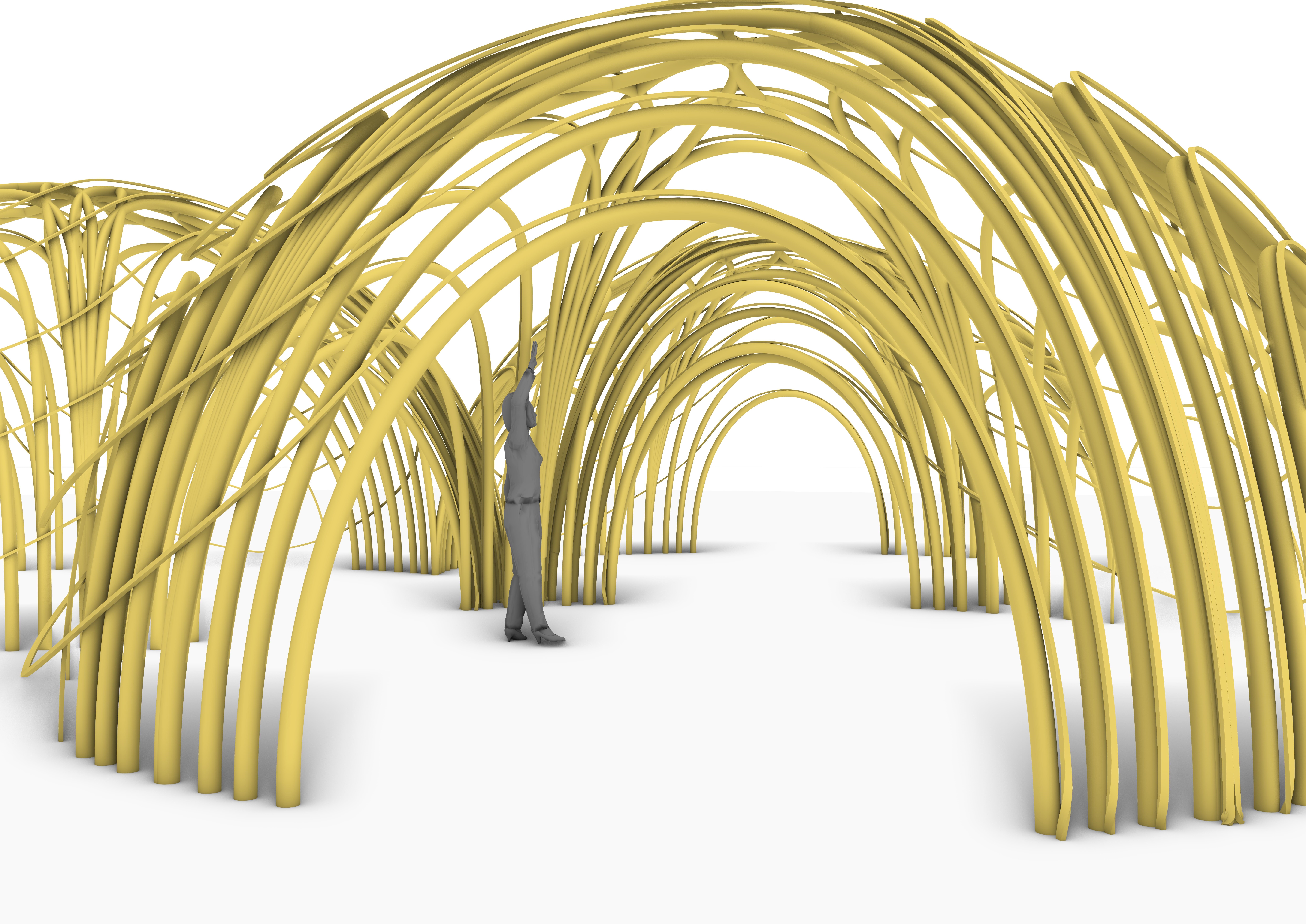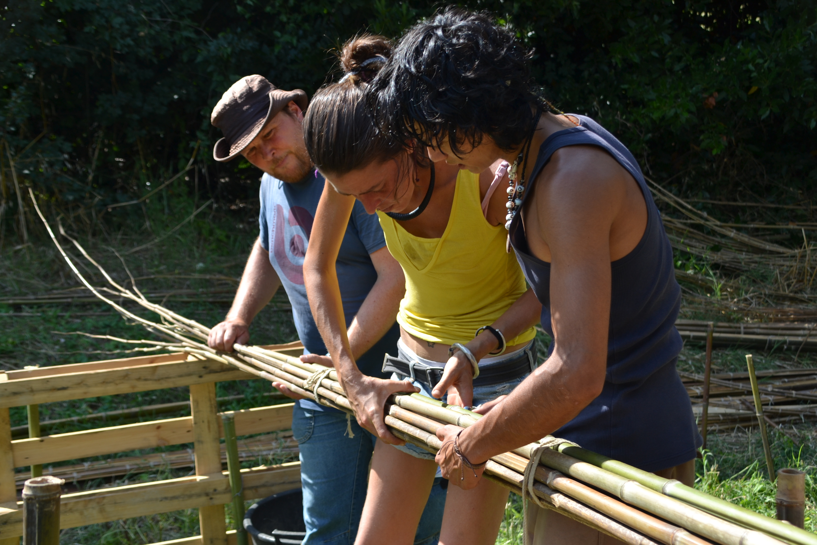 A. engages local communities, artisans, and environmental groups in the protection, the revitalization, and the regeneration of natural ecosystems, while concentrating in the selection of materials, the design of structures, and the construction process itself. The creation of A’s bio-architectural designs holds deep symbolic significance, as it is an inherently collaborative and inclusive process. Each bamboo or Arundo donax branch is unique in its curvature, strength, and texture, requiring collective evaluation to determine its role in the final design.