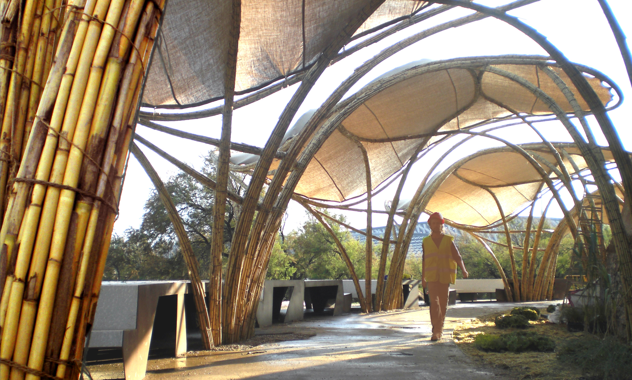 A. highlights the value of reclaiming and reinterpreting a once-abundant yet now underutilized natural resource. This not only contributes to the environment by controlling the spread of invasive species but also reintroduces the cultural heritage of using this plant in construction. The structures created are beautiful, organic, and sustainable, encouraging a reconnection to traditional building techniques while incorporating modern ecological principles. This blend of old and new creates spaces that are both functional and inspiring for users, offering an enriching experience that reflects a profound respect for nature.