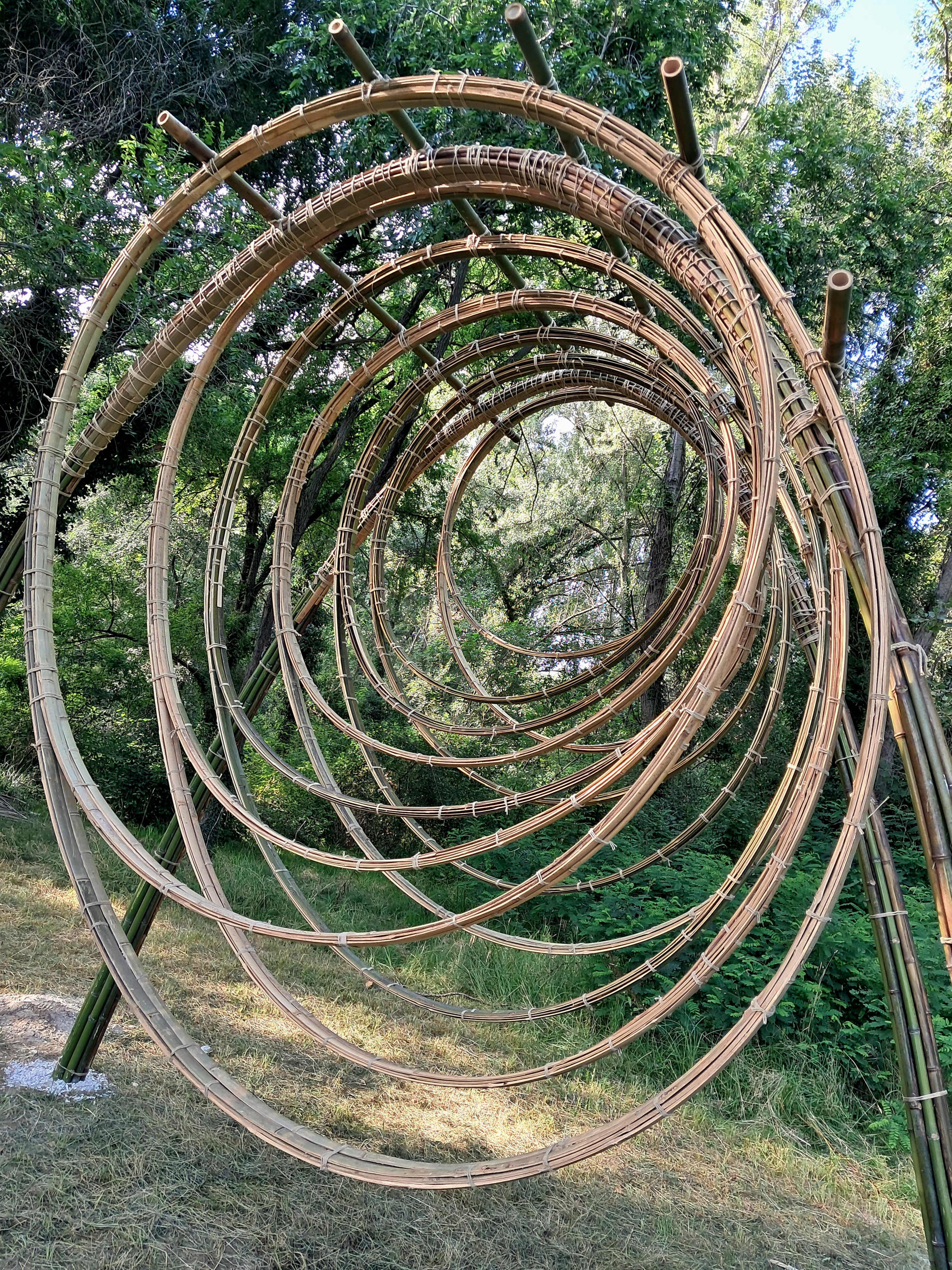 ARUNDO(A) was born as an evolution of the research and experimentation journey initiated by CanyaViva, with the aim of promoting participatory bioconstruction practices, land art, and sustainable self-building. The project enhances local natural resources, such as the Mediterranean cane and bamboo, transforming them into organic and artistic architectural structures.