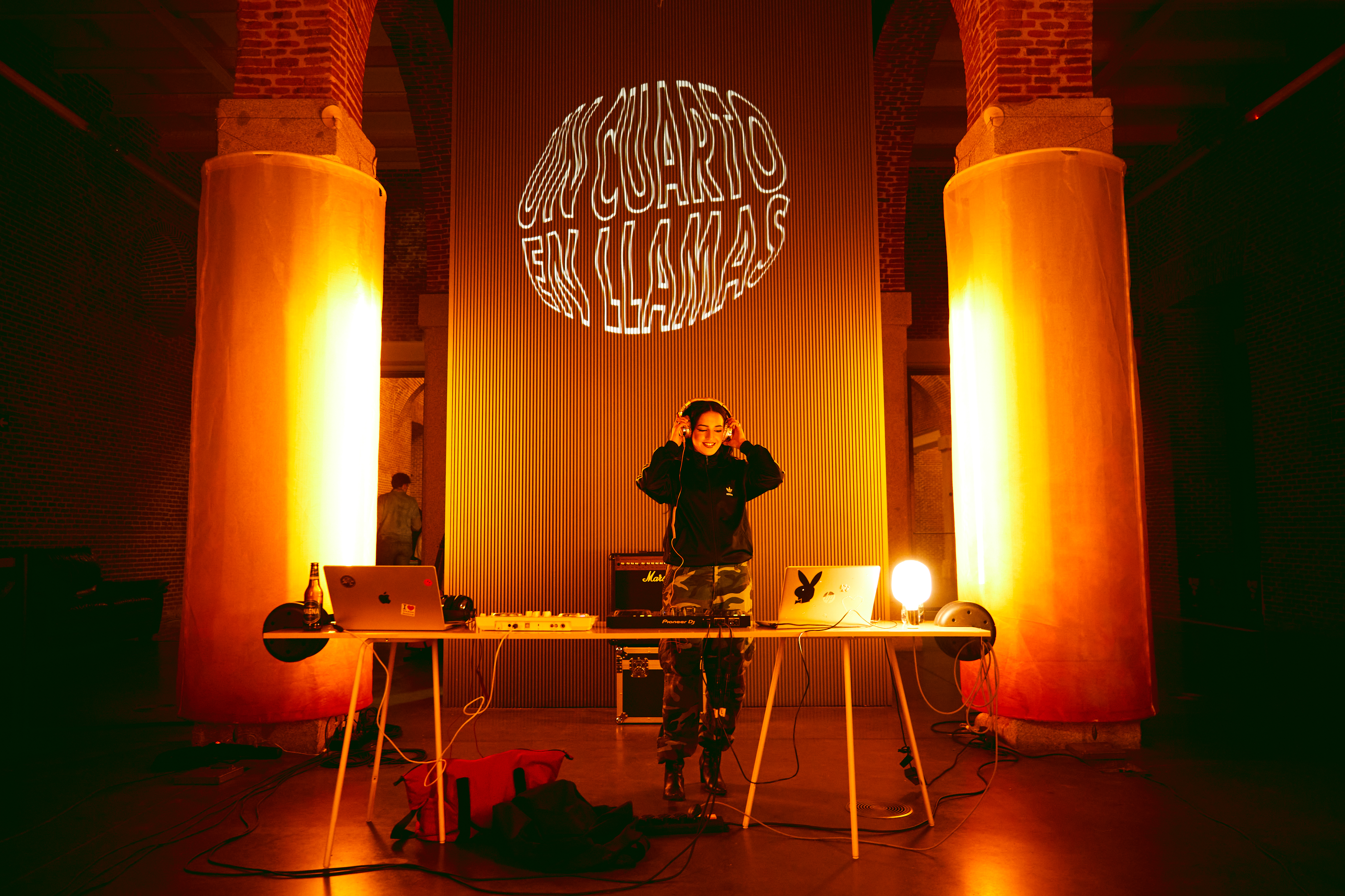 Un cuarto en llamas is a space for dialogue and cultural action led by and for young people, located in the Sala Polivalente of the former Conde Duque military barracks, a large public cultural center of the Madrid City Council. The space is managed by an open youth assembly that designs an independent cultural program. Un cuarto en llamas hosts a variety of cultural activities including concerts, conferences, workshops, performances, poetry readings, theater, video art, debates, dance and more.