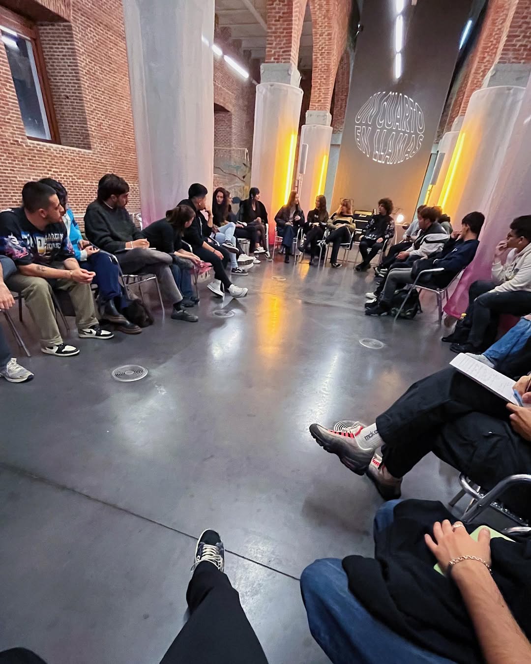 The Madrid City Council played a key role by granting the use of the Sala Polivalente at Cuartel Conde Duque, a significant public facility in the city center, demonstrating openness to new forms of cultural management. This transfer of use allowed an institutional public space to be transformed into an environment created by and for young people through self-governance, setting a precedent for cultural governance in public-community collaboration.