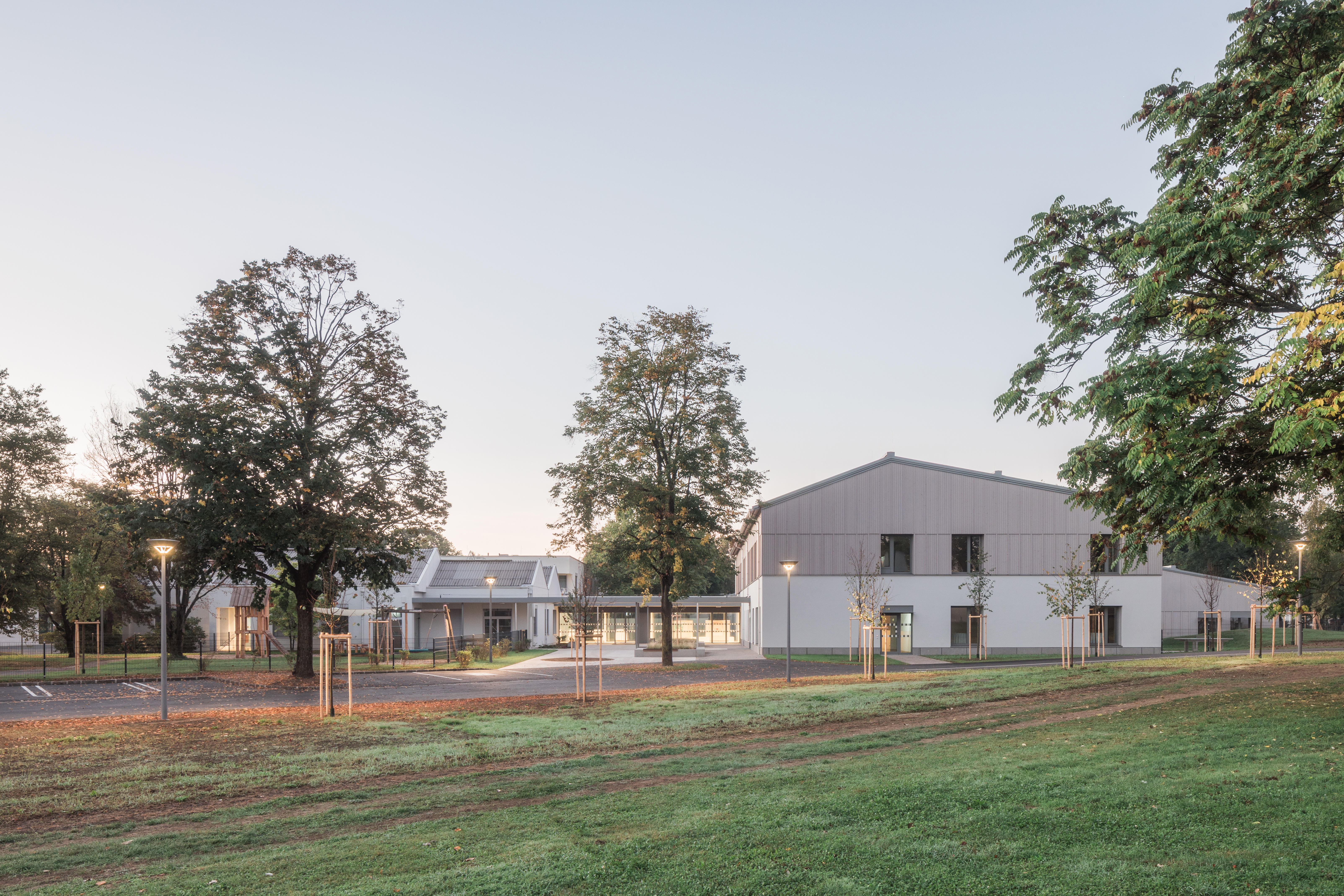 The State Hospital Graz South features a park with large trees, meadows and department pavilions. The extension of the child and adolescent psychiatry department involved a 22-bed ward, a day clinic for adolescents, therapy rooms and reorganizing the outpatient clinic and day clinic for children within the existing building. The new pavillion blends within its surroundings. The new forecourt transitions into an open connecting corridor (the avenue) serving as an entrance, gallery, visitor and waiting area.