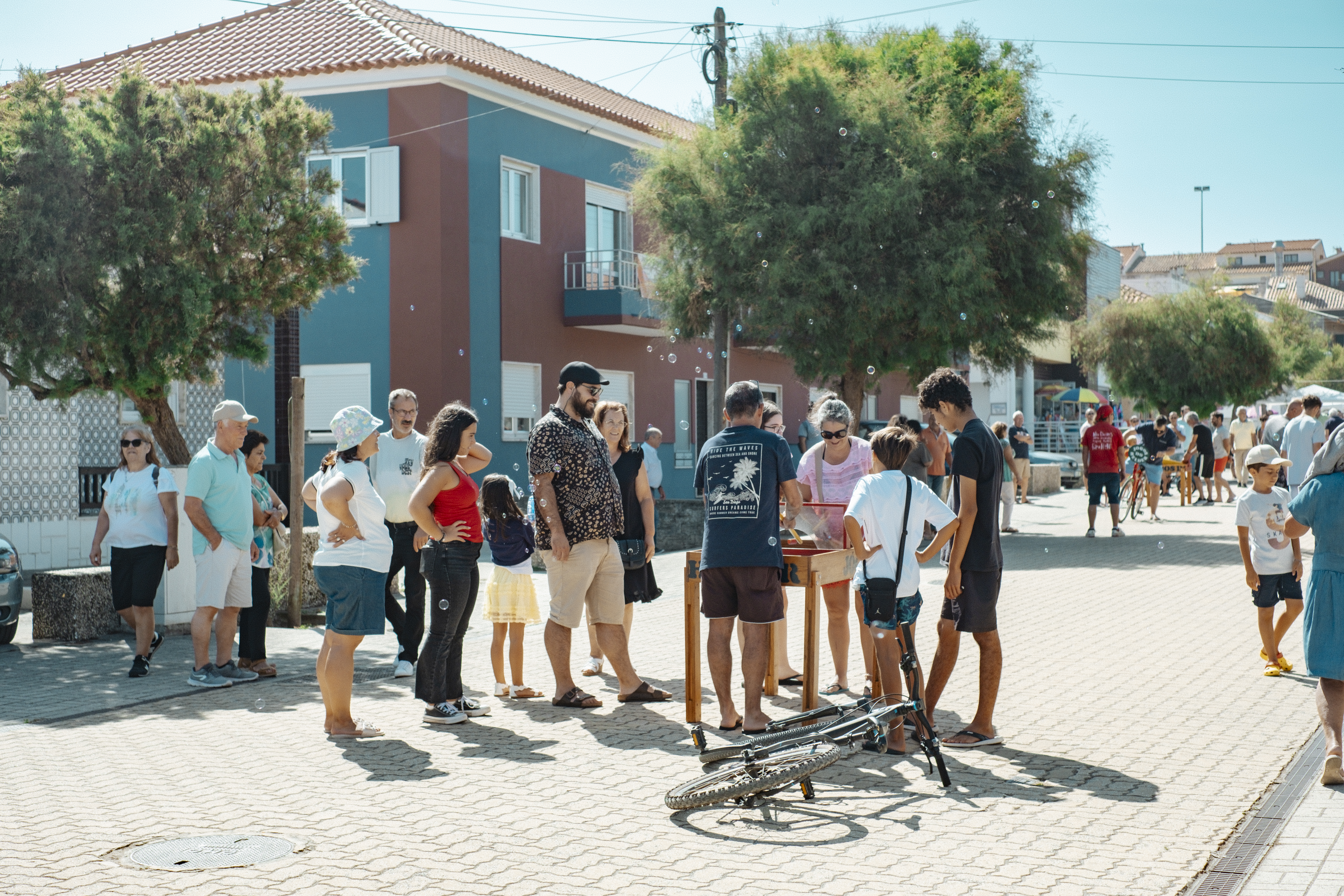 "Andar à catraia" means, in the region's slang, the act of walking along the seashore in search of materials brought by the waves, with the aim of reusing them, a practice that, in the past, was done out of necessity due to poverty and scarcity that was experienced in the region. To tackle the global marine pollution crisis that Praia da Tocha is also experiencing, we decided to "rethink" this term and create an event that combined our belief in a decentralised culture, accessible to everyone and based on the reinvention of our roots, with a strong component of ecological awareness.