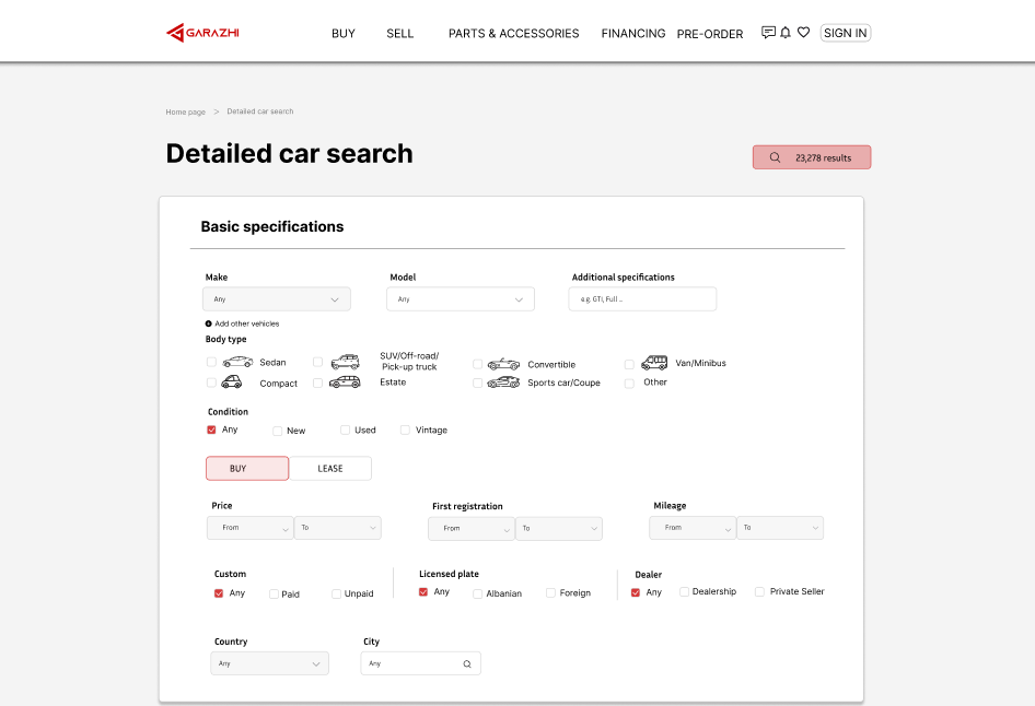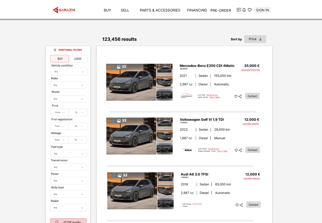 Additionally, GARAZHI incorporates advanced technology to enhance user experience. Our platform features intuitive search filters that allow users to find vehicles based on specific criteria quickly, streamlining the often tedious process of vehicle selection. Furthermore, we provide a dedicated marketplace for spare parts and accessories, enabling users to source the items they need efficiently—a feature rarely offered by competitors.
