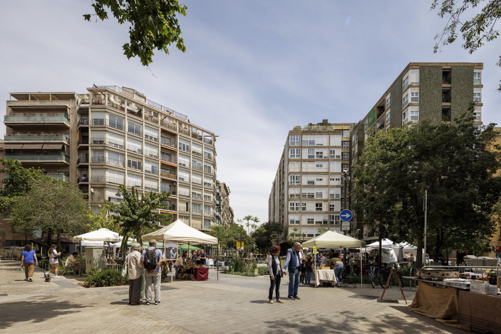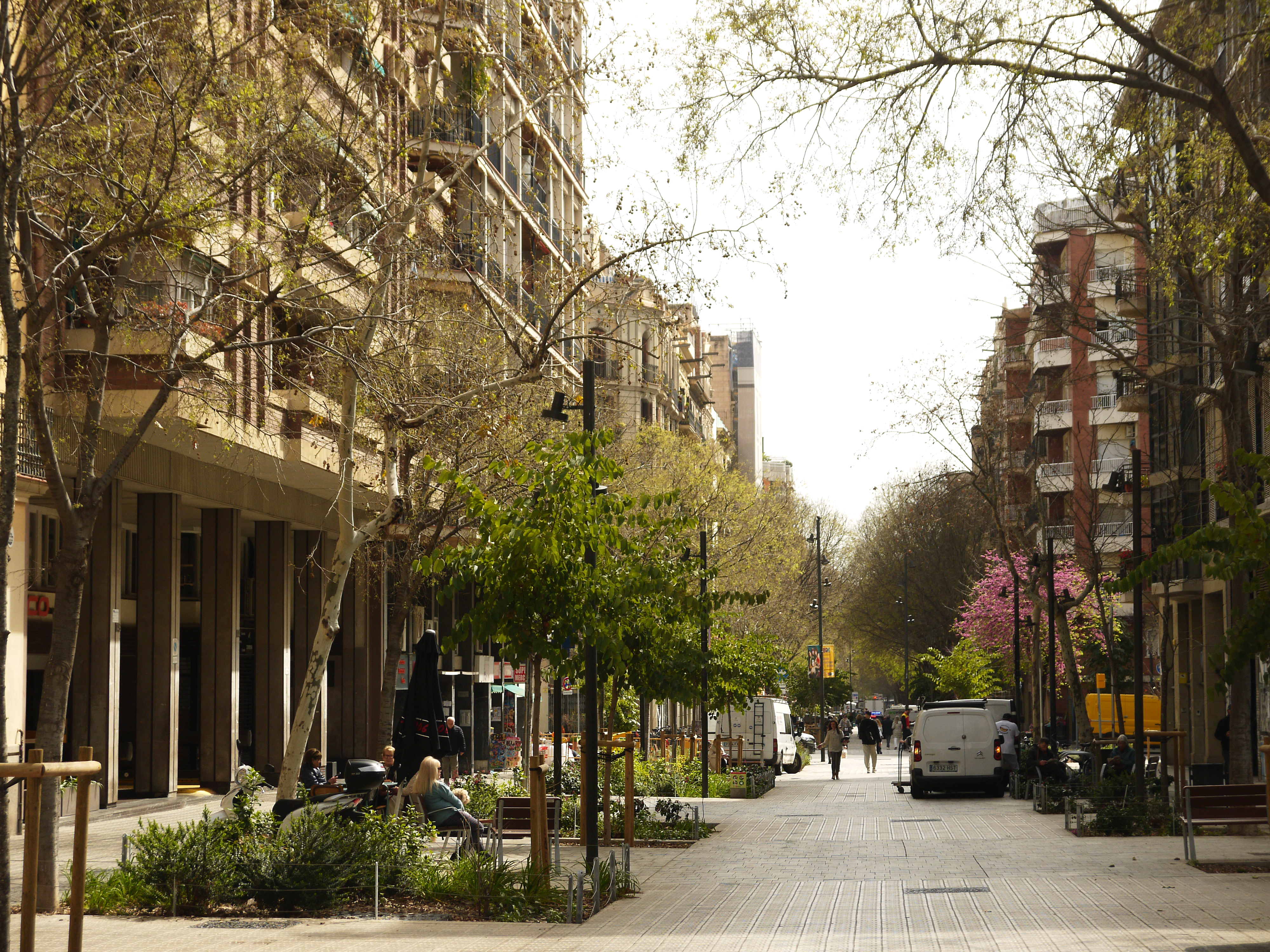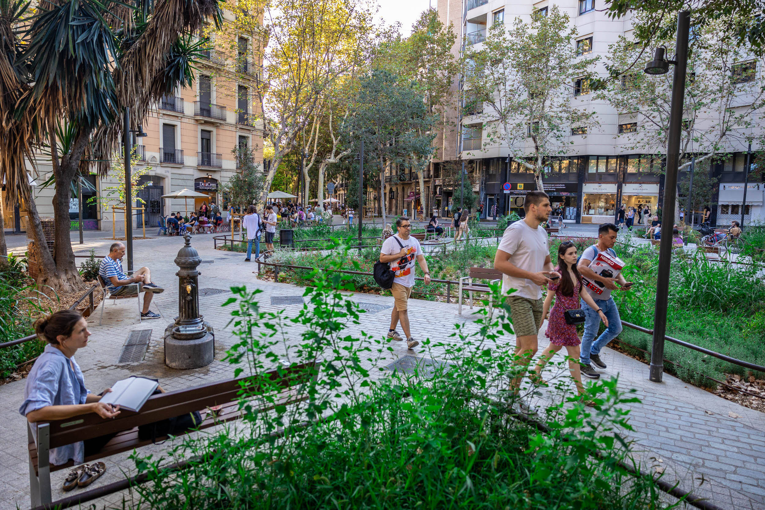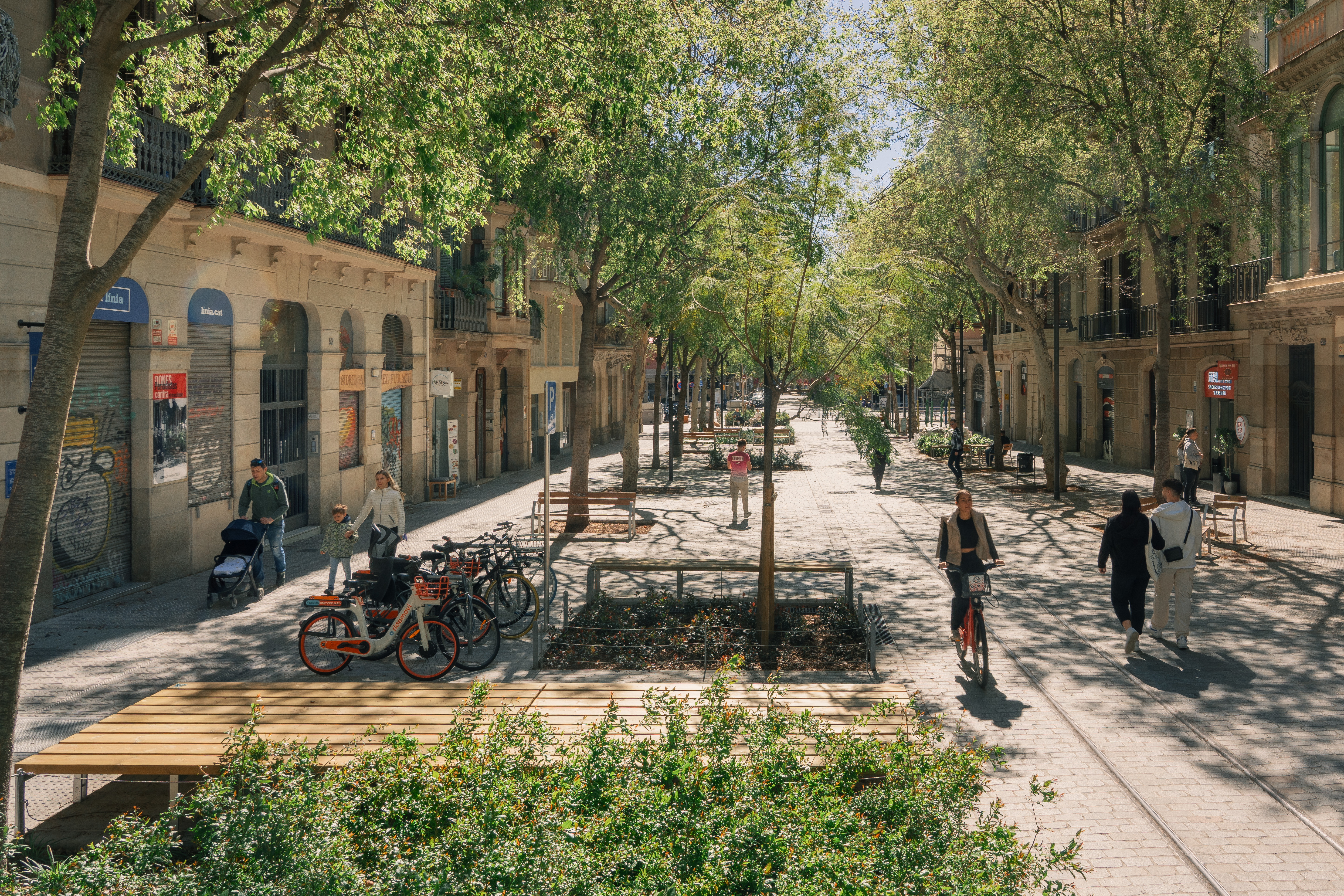 Today's streets need to be redefined as public spaces; as habitable places; as community spaces; as an extension of housing territory; as a space for games, greenery, history and local life of neighbourhoods. Streets have to go back to being guarantors of vitality throughout the entire urban fabric, to creating opportunities for the establishment of greenery and to promoting positive community life among local residents of all ages and origins. We need to fill the city's streets with life again. The Green Spaces and Squares project in Barcelona's Eixample is the strategy used to achieve this objective. This strategy, as well as the eight completed pilot projects, has been defined with a methodology that can be replicated in other cities. In this sense, not only the projects, but the whole process is exemplary and is aligned with the cultural, social and aesthetic values that the New European Bauhaus promotes.This experience has already become a new urban order, constituted by an integrated network of relationships that highlights neighborhoods, streets, buildings and current activities, promotes the recovery of public space and a sustainable mobility system. The lives of citizens are also changing, thanks to better access and the promotion of local social relations. The completed pilot projects have become very busy and highly valued spaces from day one. For many people, benches and tables are spaces for resting and meeting. The squares have brought an unprecedented and necessary public space to Eixample, and the green axes allow something which was unthinkable, such as walking in the middle of the street.The transformation has provided a new way of perceiving the urban landscape and experiencing the public space of Eixample, which has gone from being a space for mobility only to a space for living also. In addition, the renaturation of these eight new public spaces with vegetation and soft (permeable) surfaces has improved environmental quality and biophilia.