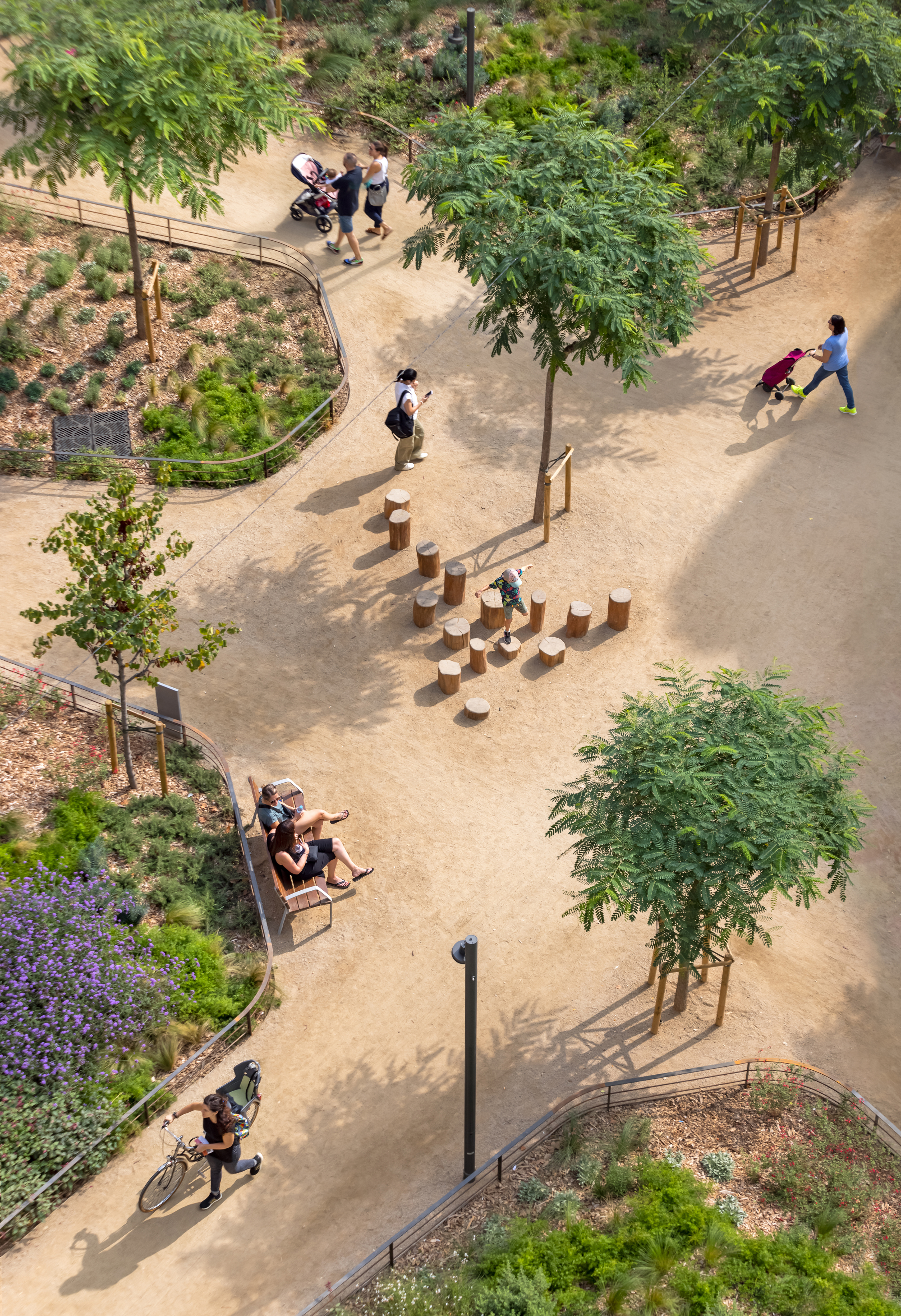 Superilla Barcelona (Superblocks). A model that lays the groundwork for transforming the city's street network. This model has been developed in the Eixample district, creating a network of green axes and strategically located squares. This district with the highest levels of air and noise pollution in the city, as well as the lowest ratio of green spaces, with only 2 m² of green areas per inhabitant. In addition, vehicles, which account for only 20% of users, occupy 60% of the street space. The model makes it possible to reorganize mobility and free streets from through traffic and to define a new street typology, the “green axis”, creating a new environmental and social infrastructure. It will be composed of 21 green axes and 21 squares that will act as environmental and social infrastructure, improving comfort and health conditions, increasing the presence of recreational places and green areas in a systemic way. During the period 2020-2023, the first phase was executed, which includes sections of 4 streets: Consell de Cent, Rocafort, Borrell and Girona, as well as 4 squares at their intersections and at the crossroads of Enric Granados street. People are the main beneficiaries of the new green axis model. A unique platform of universal accessibility is configured. The street is treated as a three-dimensional environmental infrastructure that adapts to the impacts of climate change, improving health, comfort, emotional well-being and biodiversity. The subsoil is regenerated, with a richer and draining base, SuDS is incorporated, the permeable surface is increased and new vegetation and trees are planted. The squares follow the same criteria and are designed according to two types of spaces. Rocafort and Enric Granados streets are greener, becoming new urban gardens, and Borrell and Girona streets become new civic spaces to support community activities.