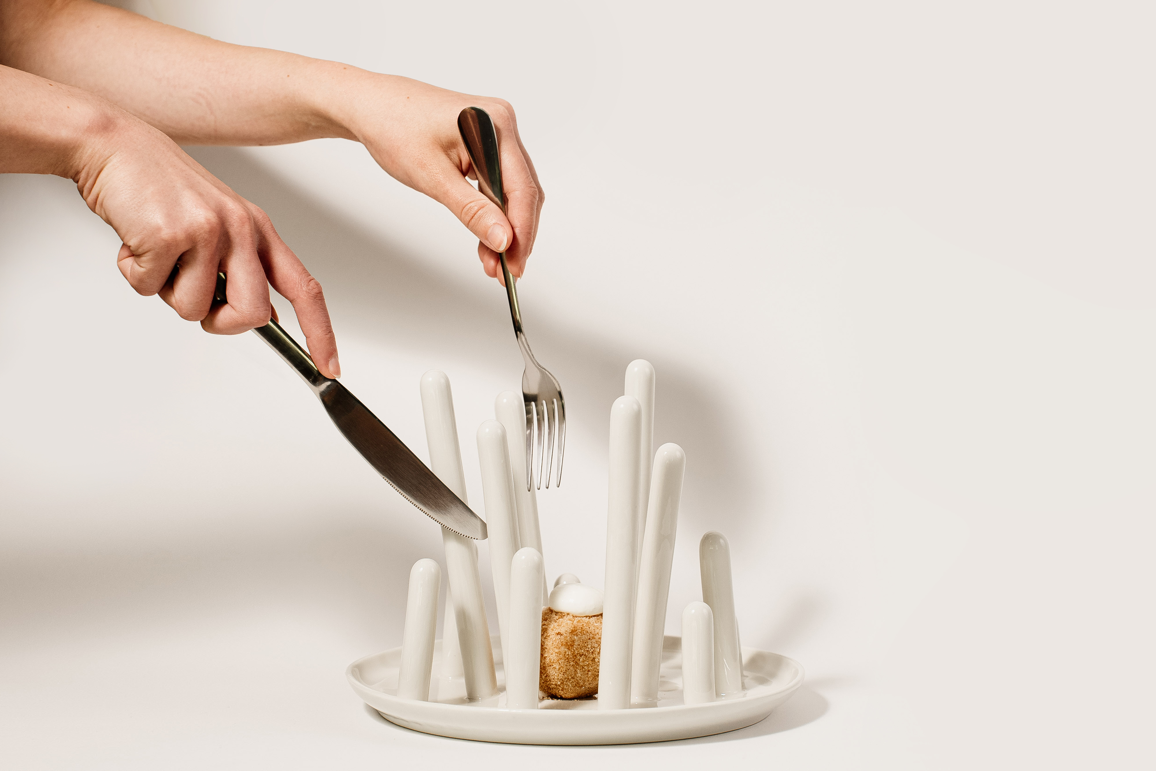 In my thesis, I explored the relationship between eating disorders, specifically anorexia nervosa, and food, focusing on related behaviors. I created an absurd group of objects,a ceramic "dinner set" by interpreting typical elements of these behaviors. Through designing serving tools with altered functions, my goal was to represent psychological processes linked to eating, raise awareness of the issue, and encourage empathy towards those affected by the disorder.