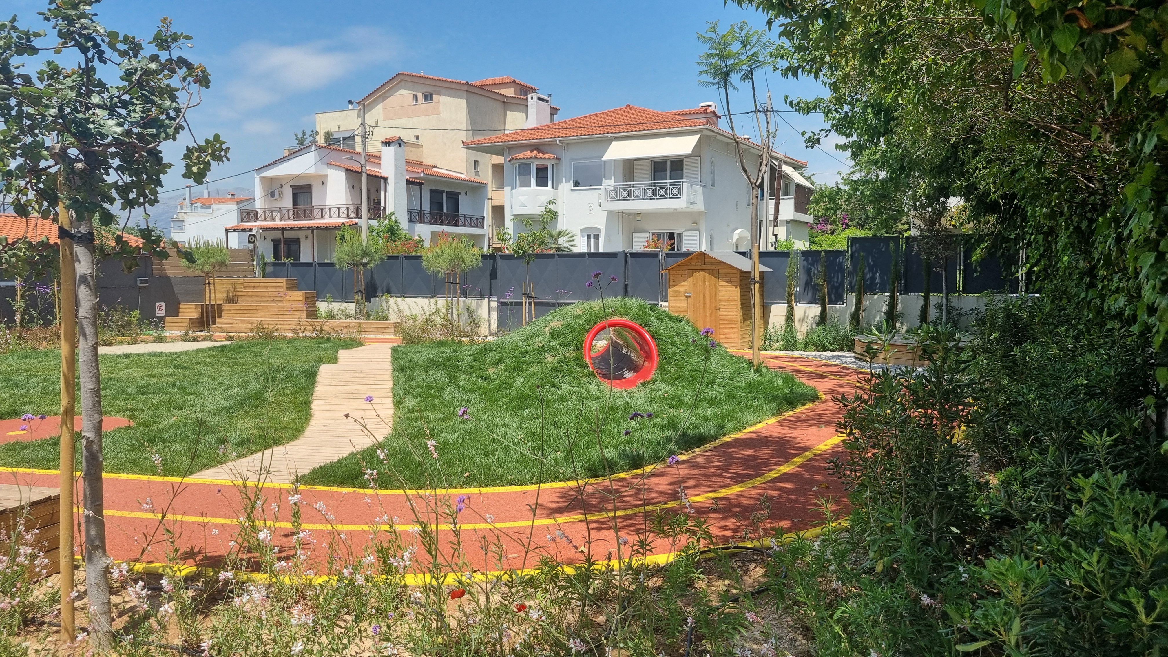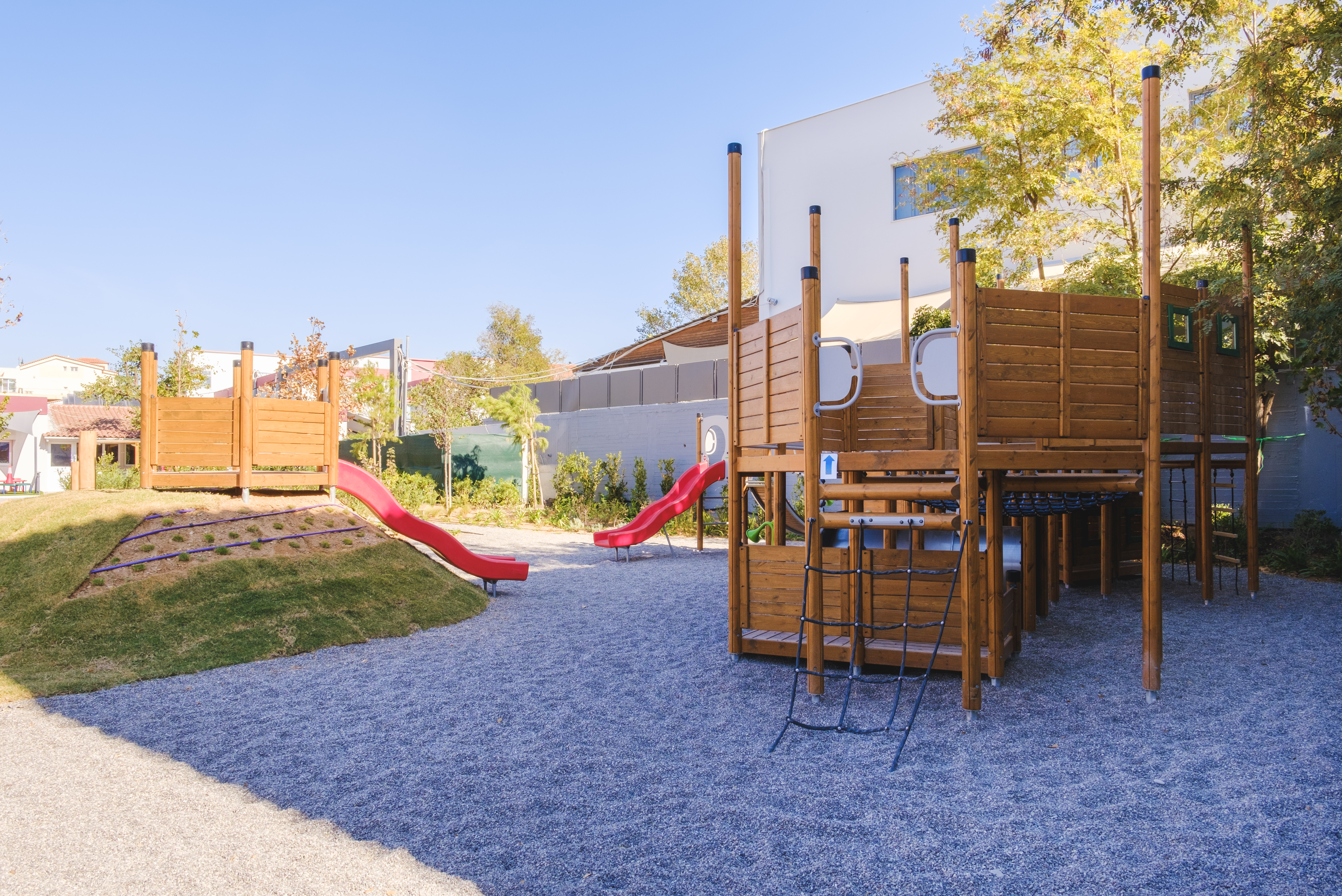 In contrast to the typical asphalt-covered schoolyards in Greece, this project