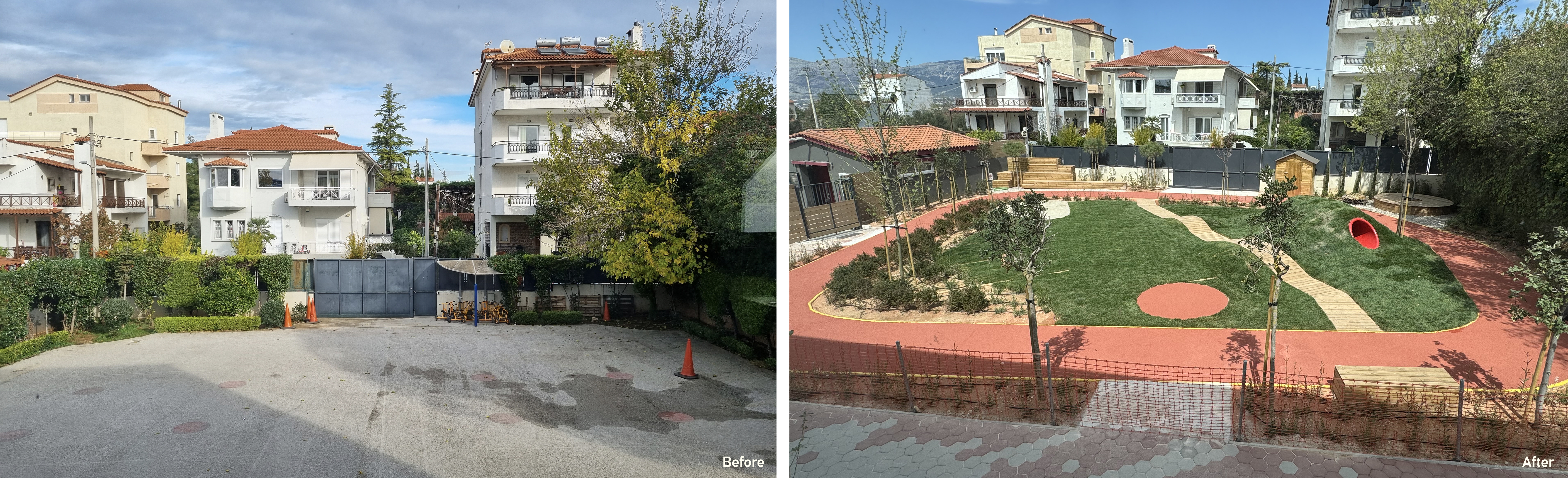 In Athens, and across Greece, nature-based schoolyards are rare. Most schoolyards are