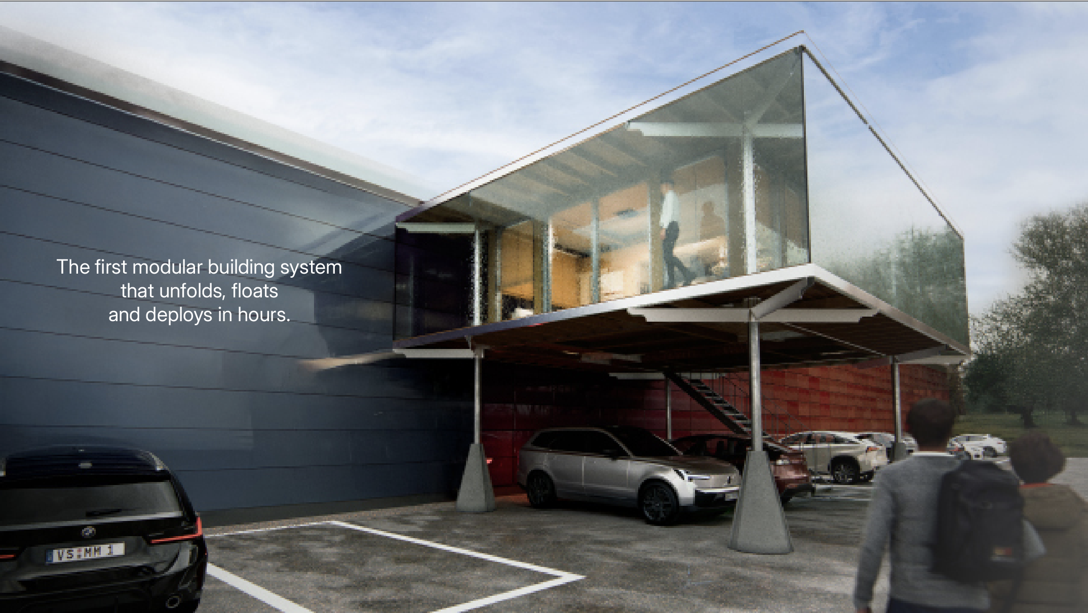 80% reduction in transport volume through foldable modules, cutting logistics costs and CO₂ emissions.