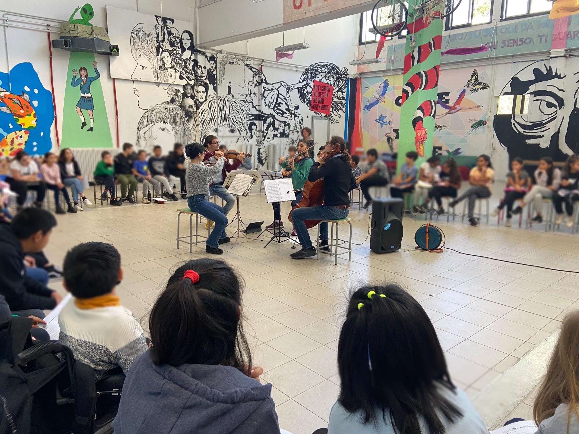 ABITO is founded on the collaboration and integration between different cultural organizations and art forms. ABITO’s pilot editions have been designed around the following themes: the value of the person as an Individual, the relationship with the Other, living in time and space. It consists of the following educational modules: METAFOUR, concert-conversation in which a professional string quartet is a metaphor of collaboration, respect, inclusion, dialogue and team work; it includes musical performances and team-building workshops; led by creative enterprise Le Dimore del Quartetto, it is addressed to Middle School's 1st-year students. EPIC OF EVERYDAY LIFE, by the editorial supplier Fondazione Mondadori and addressed 1st-year students, brings students on a journey through the book supply chain; students discover the roles of writers, editors, graphic designers to better understand how many professions are involved to create a book and how crucial teamwork is to the success of the task. NOBODY NOBODY NOBODY It’s ok not to be ok, is a dance and movement activity by the milanese institution Triennale Milano Teatro addressed to 2nd-year students; from the personal experience of a professional dancer, the project is an open process investigating the memories and marks left on the body by bullying, toxic masculinity, violence and offense; it is conceived as a series of protest actions, arising from solitary and meditative practices. PROMENADE by Museo Teatrale alla Scala, proposes a guided tour at the museum of Teatro la Scala, a walk through the memory of musical theater and through the history of the city itself, to overcome stereotypes and raise awareness on social sustainability; it is addressed to 3rd-year students. LET’S PARTY is a simulation of a dance floor with a DJ playing to reflect on individuals’ behavior in places of leisure; organized by Italia Music Lab and Equaly, it aims to create a safe and comfortable environment for all.
