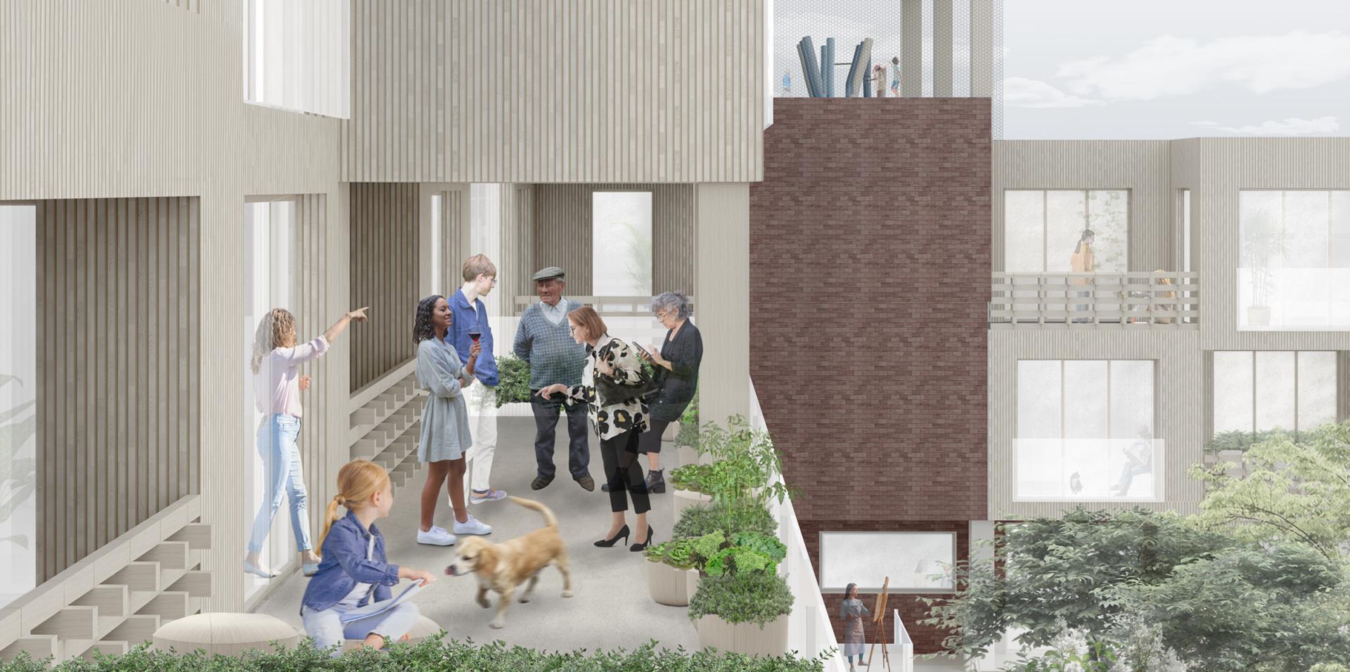 Healthy ageing environment, community building and sustainability. The project of age-friendly housing embodies solutions to improve residents' well-being and stimulate daily integrations to increase the social inclusion of the elderly.