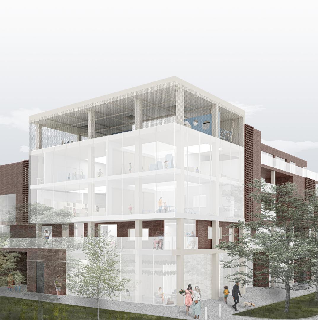 Collective zones for residents, a greenhouse and outdoor activity objects serve to develop interests, spend time actively and stimulate neighbour-based interactions. Galleries and shared balconies are the core of those interactions, as in one form or another located on each floor. Their surface is of use to urban farming and gardening. The heart of the project lies in the biodiverse atrium, a centre of recreation and tranquillity. Generally, nature surrounds the housing, which positively impacts the health of residents.