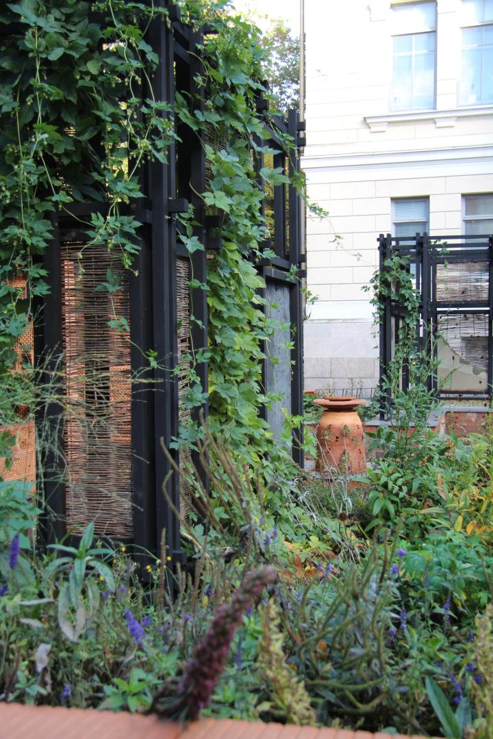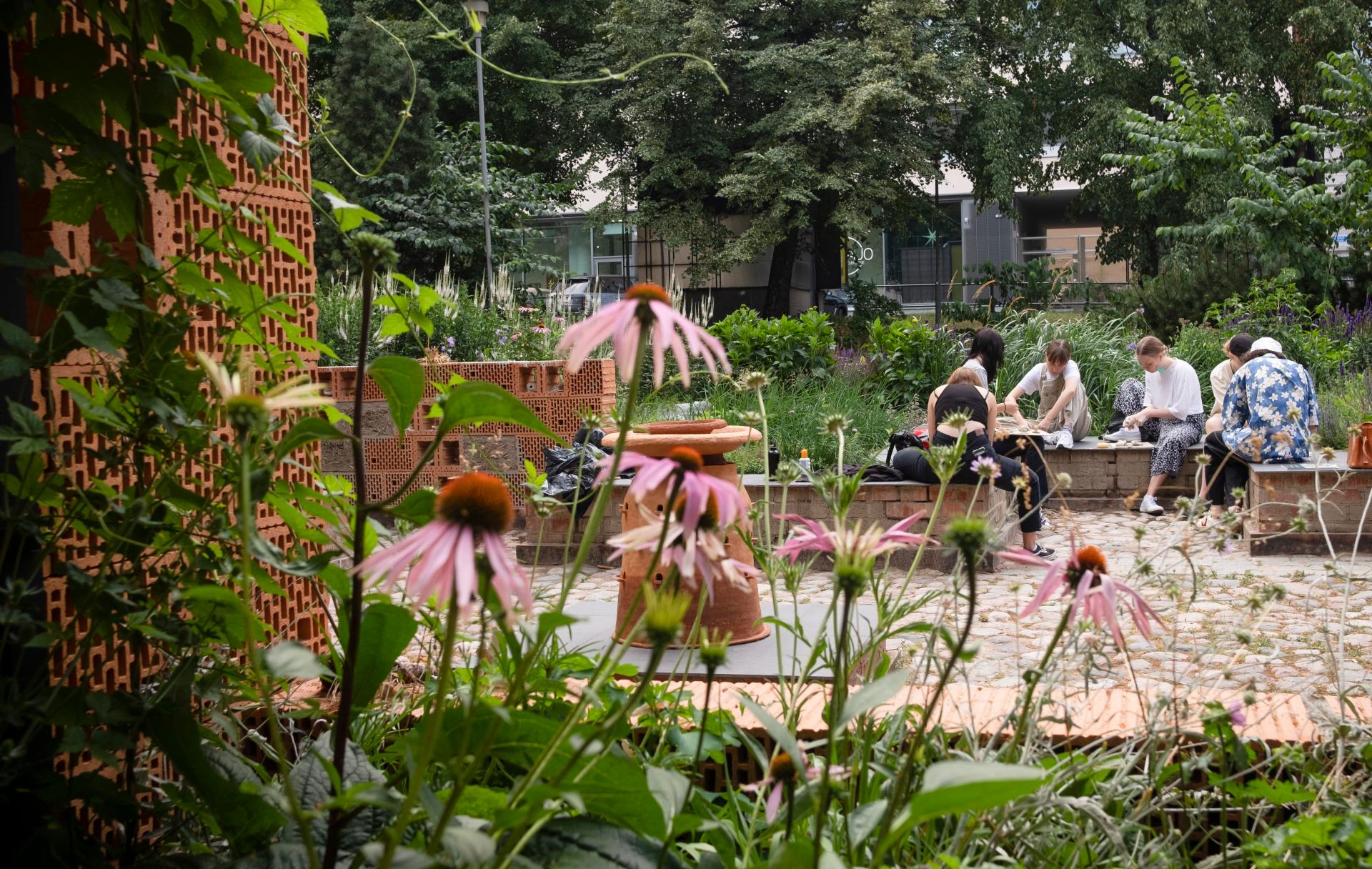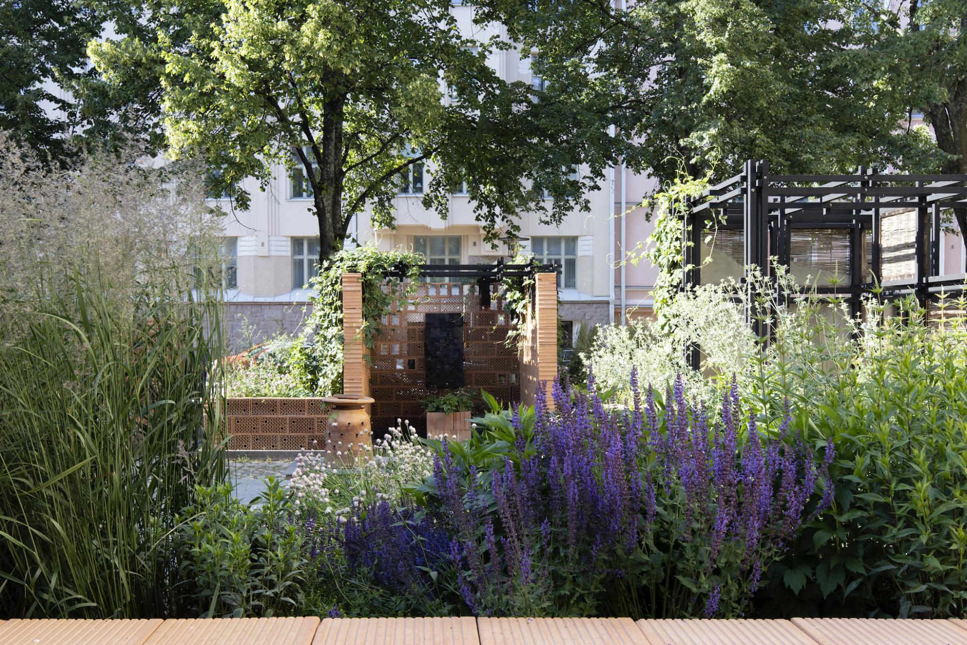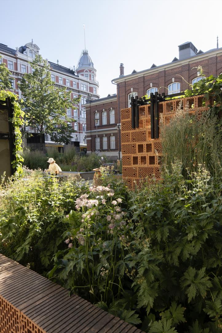 In practical terms it is a public space accessible for all, open and free. Located on the courtyard of two Helsinki museums in the center of the city, it offers a respite from urban commercial spaces and allows for anyone to come and use it as they wish. It is a sanctuary for people, pollinating insects and birds. There is sensory enjoyment and a calm atmosphere offered for anyone, as well as nutrition, shelter and water for the non-human visitors. The cultural program is also free and open for all, and organized by various stakeholders.