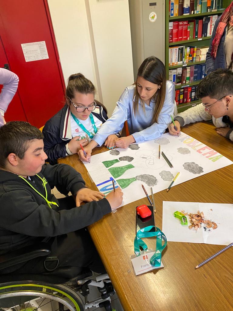 The inclusion was fully realized in this project by involving a group of students with special educational needs from different classes and courses at the school. They worked outside of their regular classes once a week, for two hours each time, and were guided by a SEN (Special Educational Needs) teacher throughout the entire year. Initially, the students were guided by their tutor to socialize with one another and foster connections. They used questionnaires to introduce themselves, which they later read aloud to share something about themselves with the group, as an ice-breaking activity. The students were genuinely happy to make new friends and feel like they were the protagonists of the project.