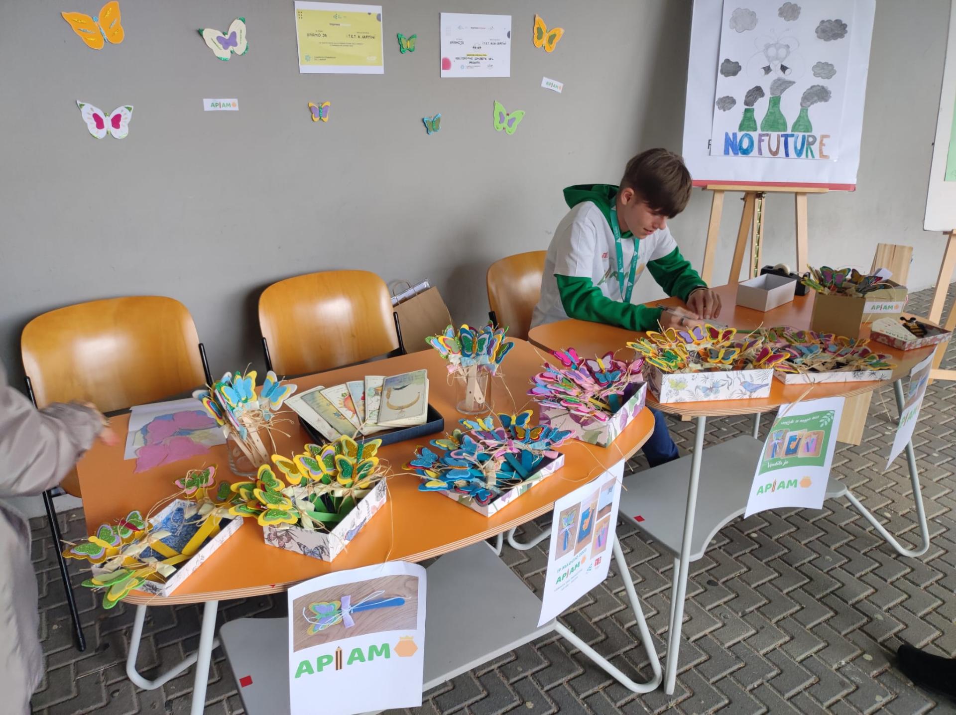 The protagonists of APIAMO project are 7 students with special needs coming from different classes and courses and of different ages who worked in a blended group inclusively, each with his or her own peculiarities and according to his own style and talent. The group was managed by a SEN teacher with others from the SEN Department of the school. At the end of the project, as a final outcome, they manufactured a nice bookmark using simple material and simple instruments of work. The bookmark, shaped like a butterfly, contains seeds of flowers to plant, to give nourishment to pollinators; the gadget, which was sold to the school community, is a sort of message that invites all people to care for vulnerable insects, of the school flowerbeds and complete the final mission of the Project which is the creation of a botanic garden and little wood whose students from all classes and courses will take charge of this garden. This idea has three aims: to give students an active role in taking care of the environment they live in, make the school more attractive place and at the same time the garden will offer nourishment to pollinators. The project wants to involve people to do something simple but very important for all the spaces they live in and foster respect for the shared spaces of the school and the urban area.