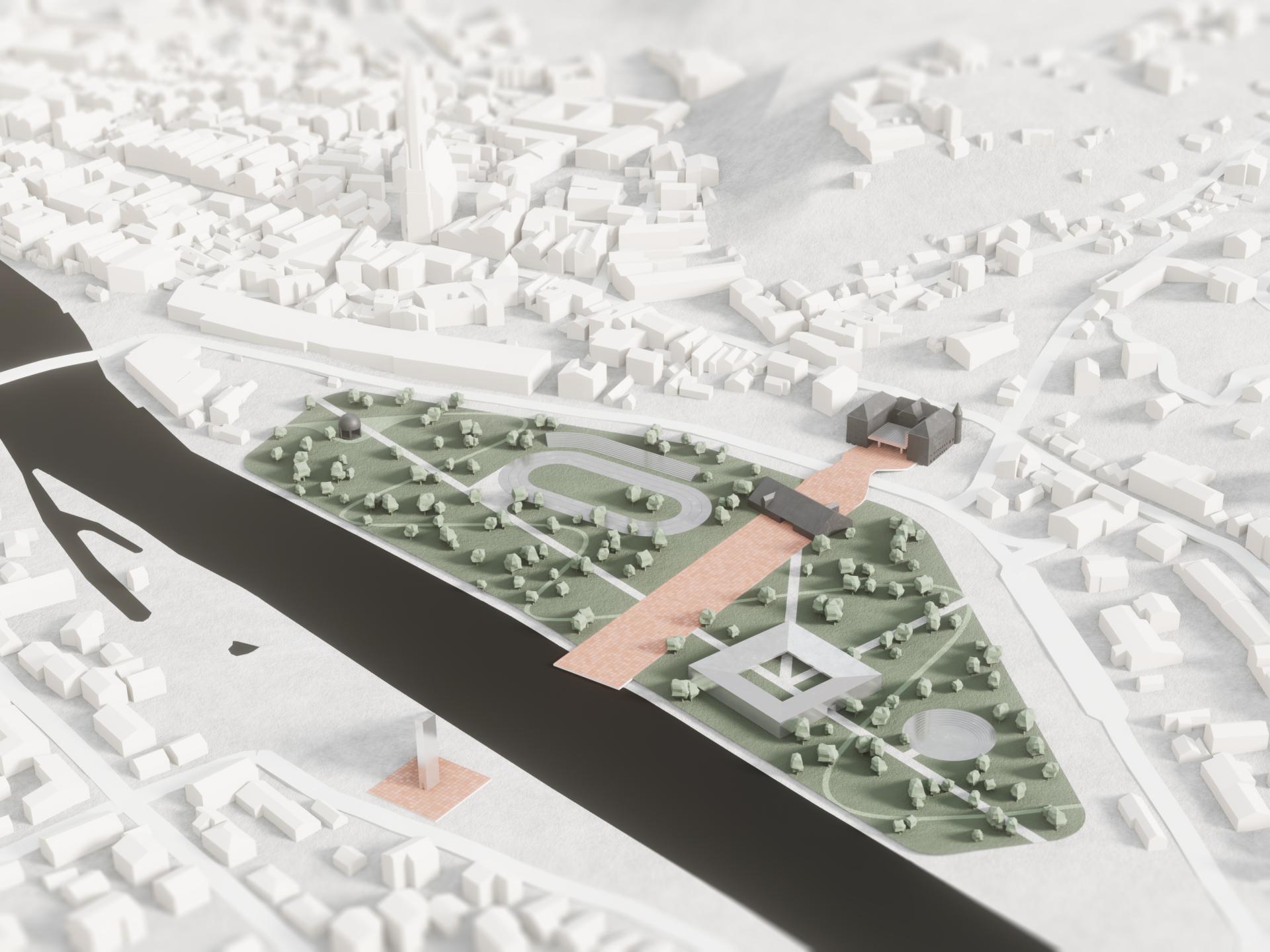The project consists of two consecutive phases. First and foremost the prison will become a digital archive: a protected storage facility preserving our digitised collective heritage. The upper floors of the building will provide space for the server stations, while the ground floor will function as a public forum to be used for educational purposes and to foster public engagement with the stored data. The project then expands into the nearby park. Without diminishing the existing green space, various existing and added buildings will provide space to practice, showcase, teach and preserve the intangible – performative – parts of our culture.
