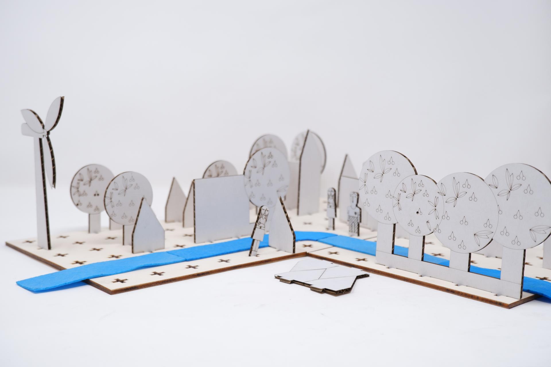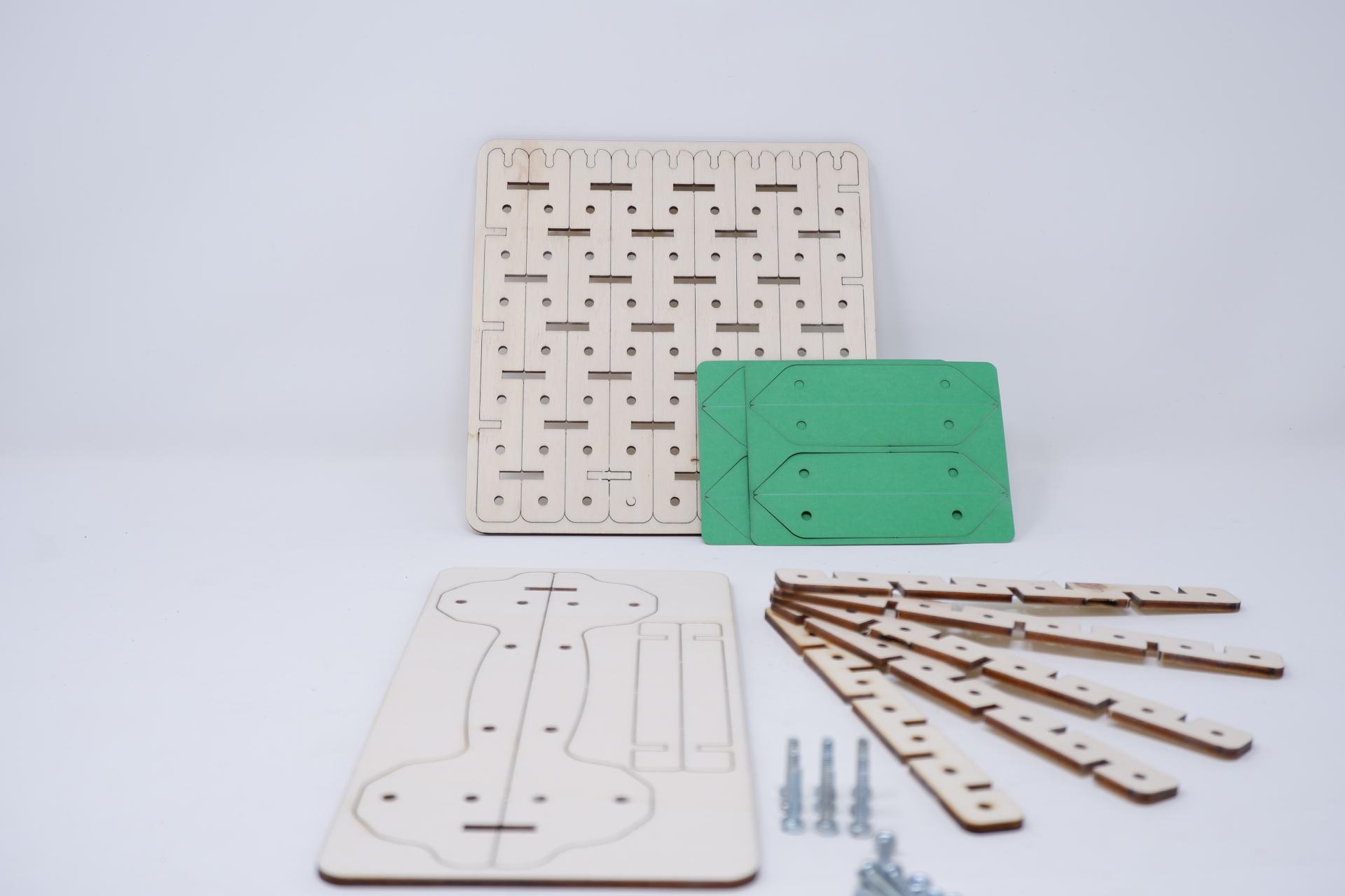 Finally, we made sure that the materials were made in a sustainable way. The kits are 90% made out of wood with several other parts made of cardboard, textile materials and very little amounts of metal and plastic. The materials were planned to resilient and, based on our current experience, require a replacement rate of about 3-5% per year.