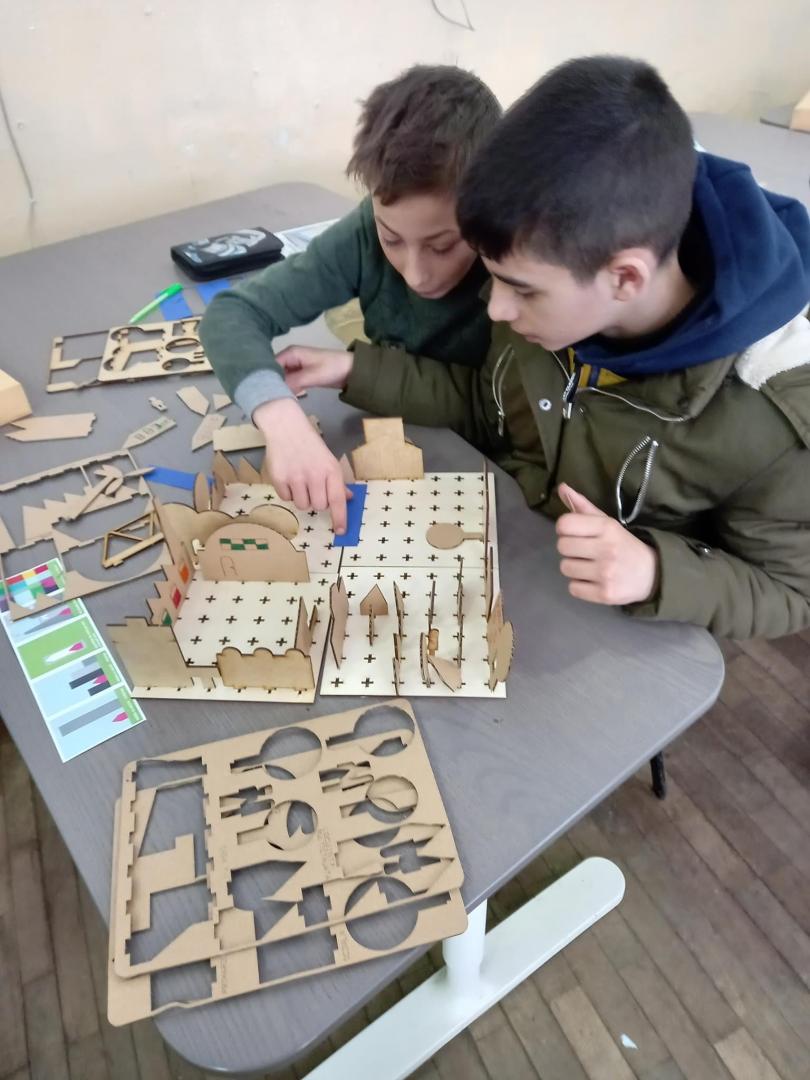 Teachers and children were involved as well in the design process. The first year their contribution related mostly to fine tuning activities, providing feedback and creating adaptations depending on their own contexts. For instance they came up with ideas on how to add different team exercises for the children or create an additional exercise for the lesson on Urban planning, where the entire class would pool their resources to create a big model of a city. They also came up with the idea of creating exhibitions with the projects of the children and we provided with all the needed support.