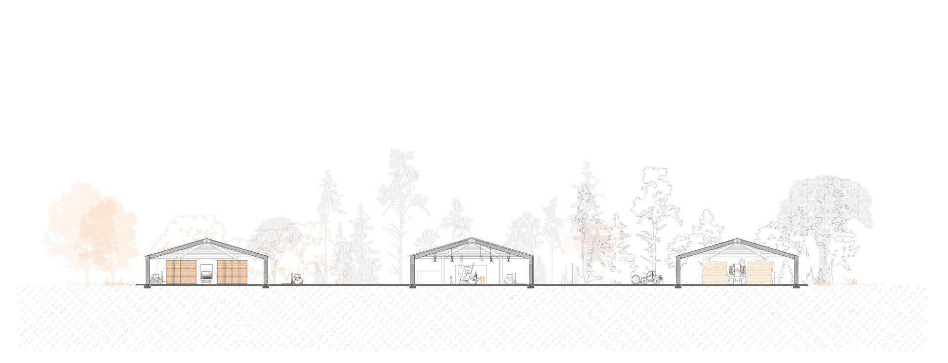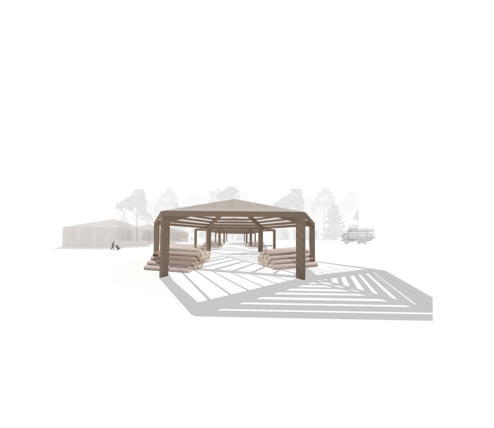 The idea of this project is to create a network of small sawmills that reactivate locally. The project envisages that it will be transferred to other locations, adapting the form of the architecture to climatic needs. This whole network of sawmills would be connected to another sustainable industrial network.