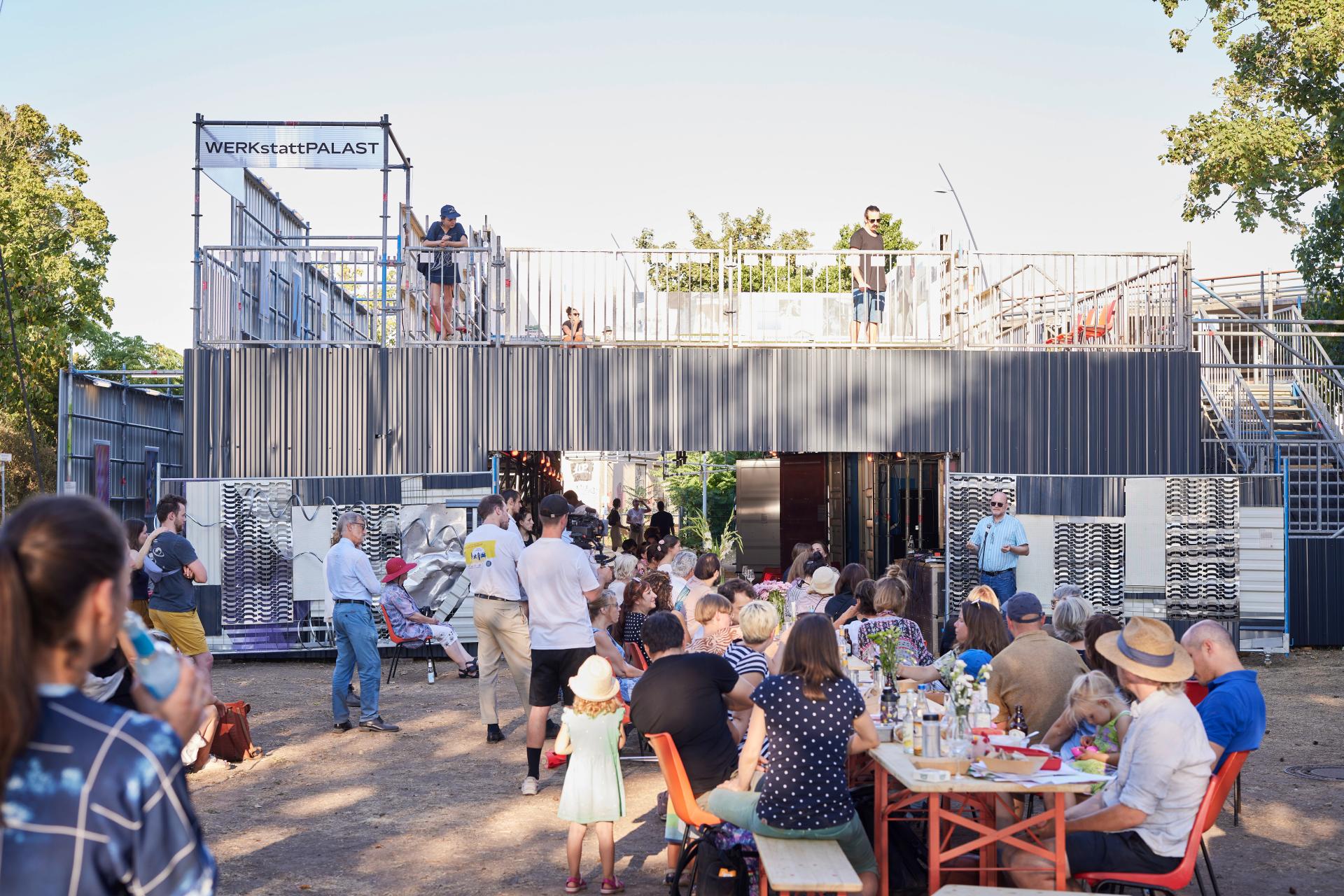 lectures, dialogue rounds, workshops, performances, guided tours, listening sessions, concerts, question rounds and much more. Our approach was to bring people from all areas of society together through a jointly created offer of science and art, so that they could listen to each other and exchange ideas. The programme was realised by about 190 people from a wide range of disciplines. And all this with free admission. New communication formats for the transfer of scientific content were thus tested in diverse and unusual ways and made tangible not only theoretically but also practically. Opportunities for visitors to participate were part of almost all programme items. In addition to the architecture itself, the key to accessible and barrier-free knowledge transfer were numerous artistic contributions, participatory offerings and the design of catering venues. Rather than traditional lecture-style learning, the "WERKstattPALAST" advocated for hands-on, experiential learning that is more engaging, impactful, and transformational.