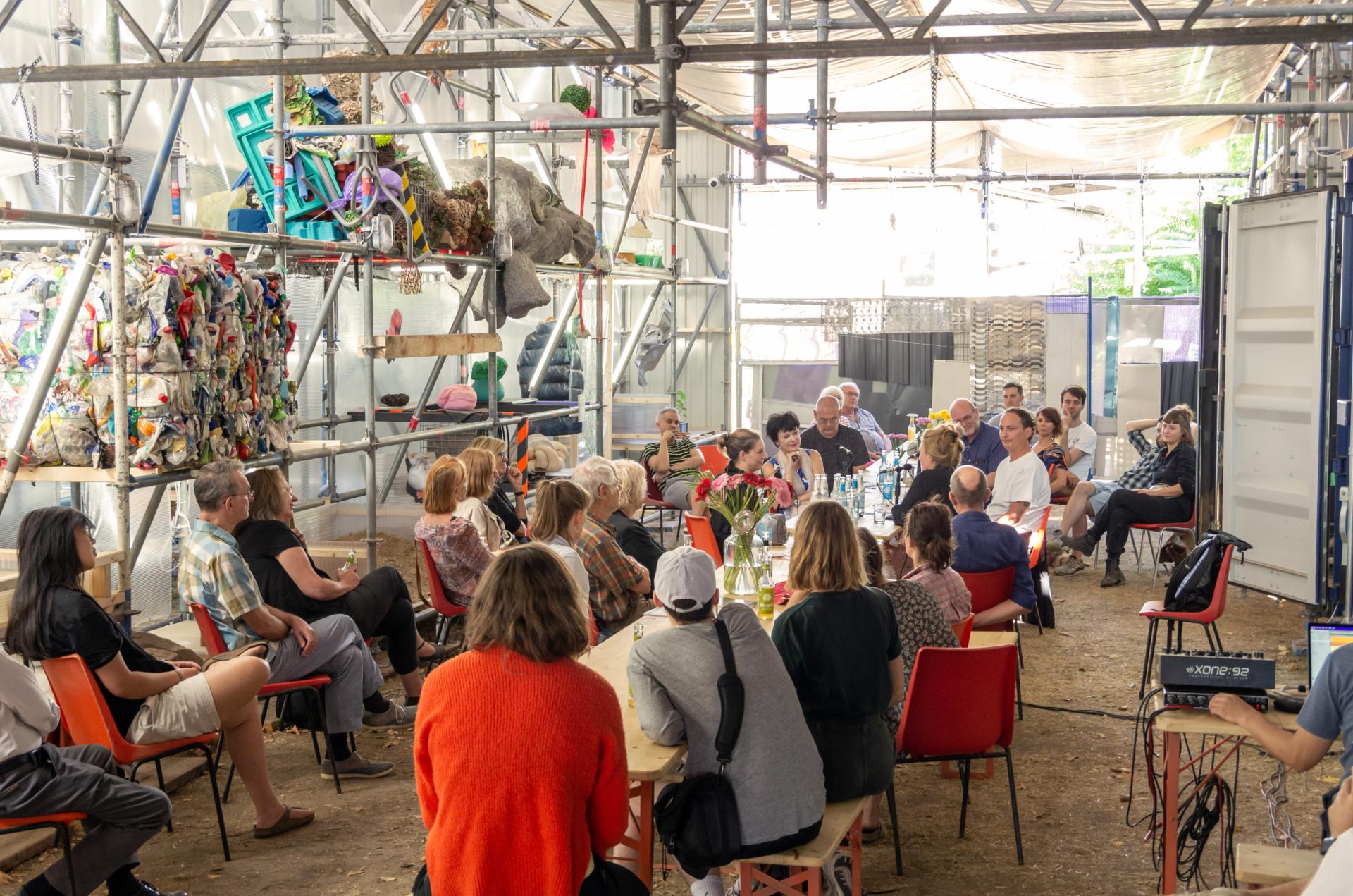 of time, which was well received throughout. At a self-built 25-metre-long table, people were able to engage in low-threshold conversation and exchange ideas about what they had seen in an inviting atmosphere. The speechlessness in our society has continued to grow during the pandemic in the last two years. There are too few places and contact points where people can exchange and share newly acquired knowledge across old and/or newly created boundaries. In particular,