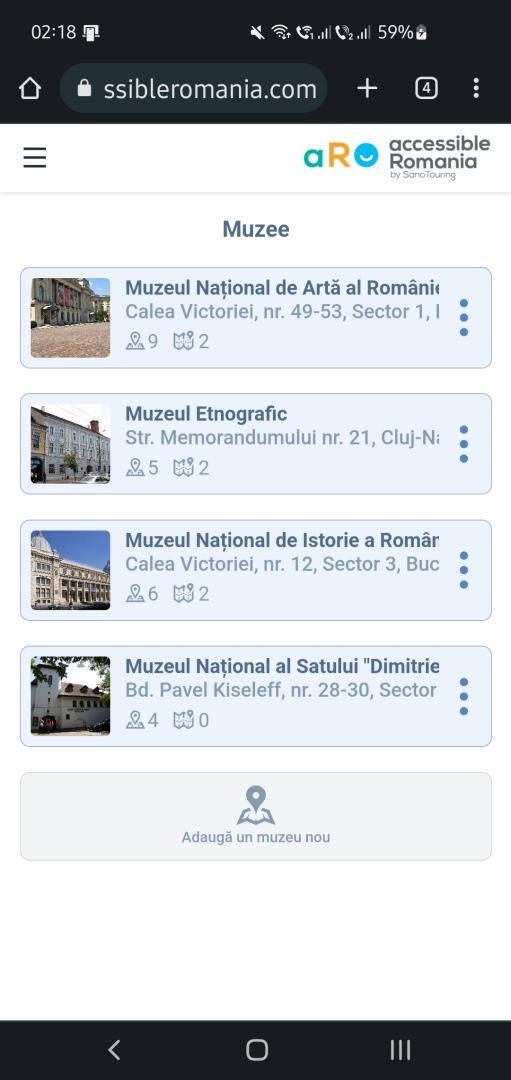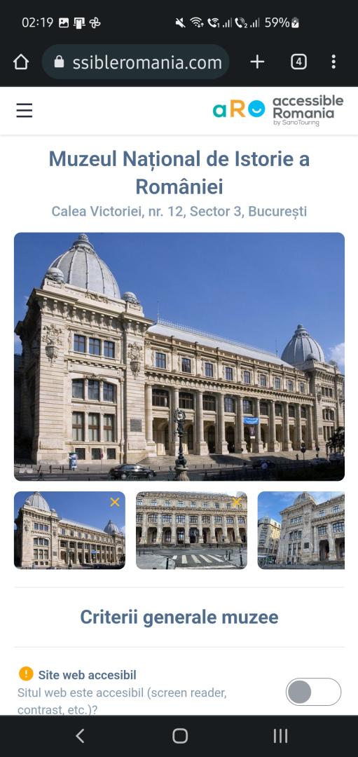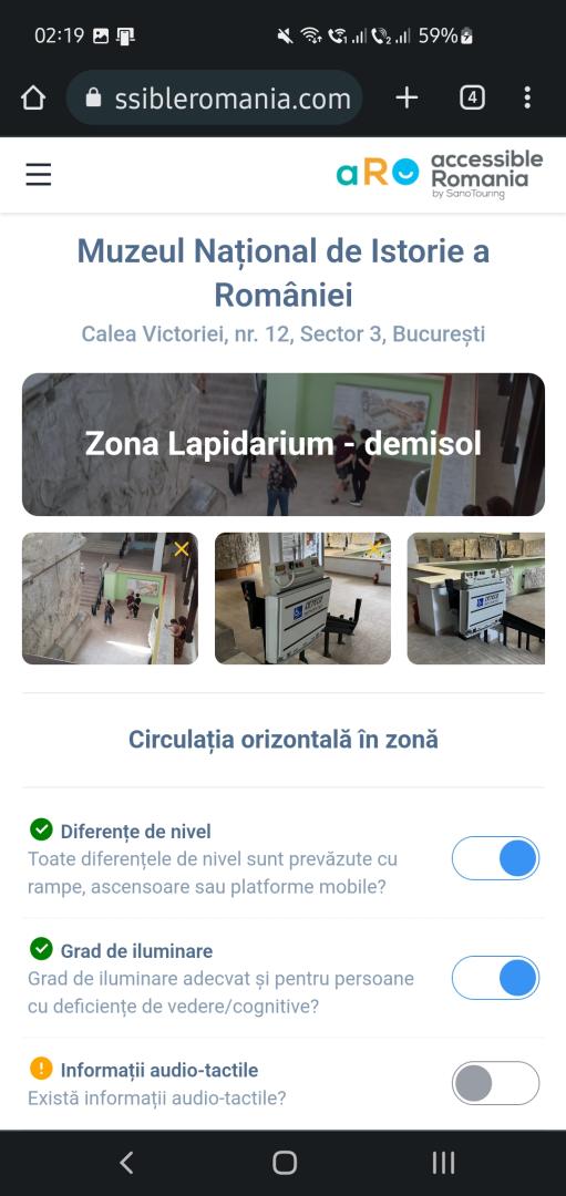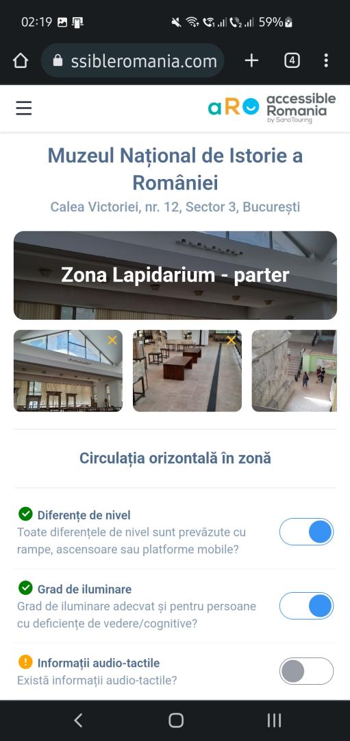 AUDARA is a web-based application https://audara.accessibleromania.com created by Accessible Romania by Sano Touring that delivers accessibility audit reports showing the accessibility status of Romanian museums at the time of the on-site visit.