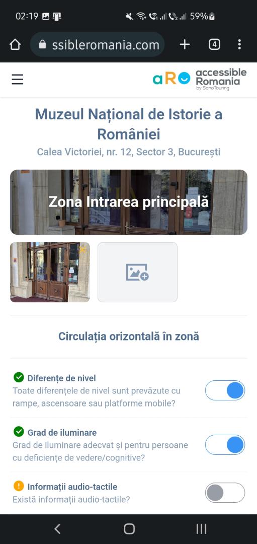 On the occasions of the accessibility audits and the accessibility non-formal training carried out during the last 7 years, Accessible Romania by Sano Touring accessibility experts observed the interest of the museums on the subject. Current circumstances, where financing opportunities are available for improving access and participation of persons with disabilities, make the audit report provided by AUDARA a valuable tool that can contribute directly to decision on investment in such measures.