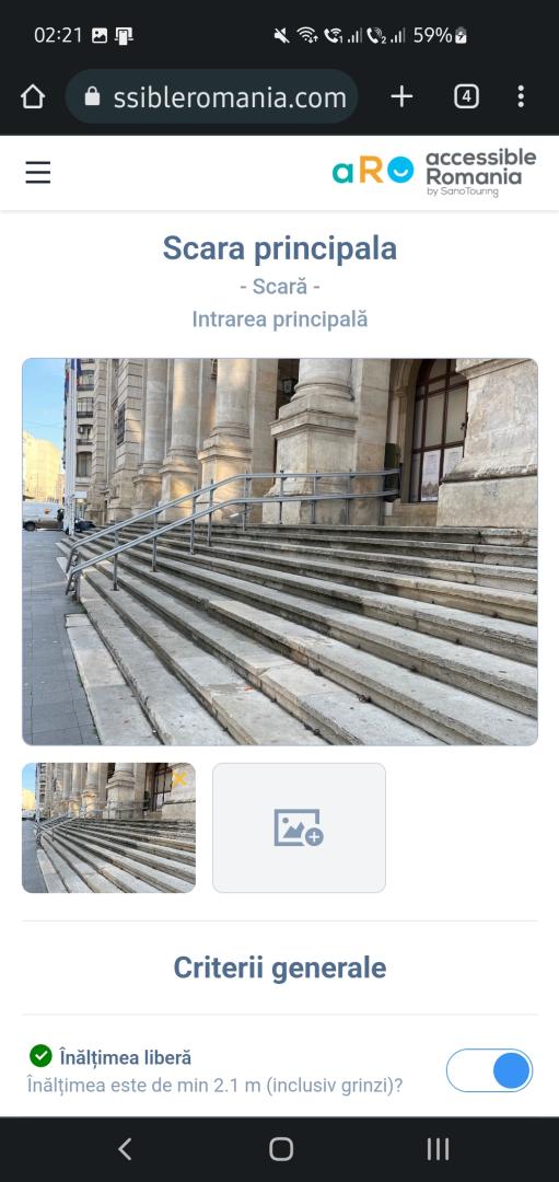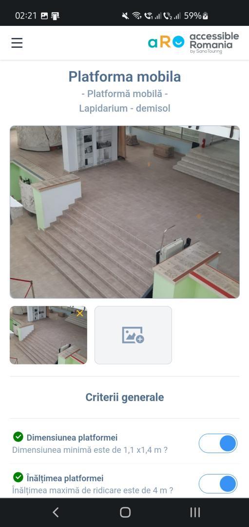 The idea of designing an accessibility audit app came from the practical experience of Accessible Romania by Sano Touring, as a tool for supporting the accessibility auditing process and for raising the accessibility awareness of Romanian museums’ staff and on the need to become more inclusive environments, so more museums can be included in the accessible tourism travel packages designed by the agency.