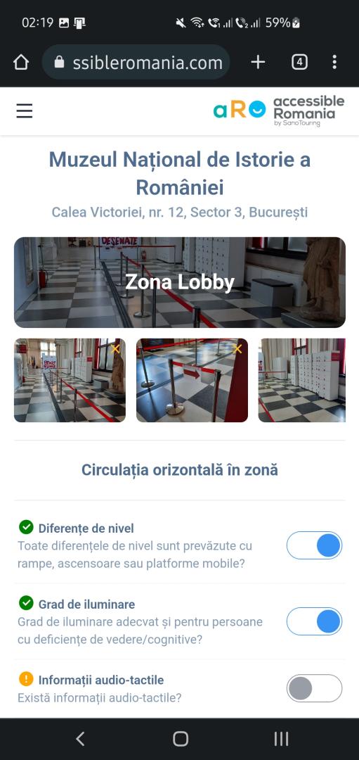 Museums can create or update their accessibility policy using the information provided in the audit report. This information may be posted on their website and displayed in Romanian as the first language, and in other languages if the website allows it.