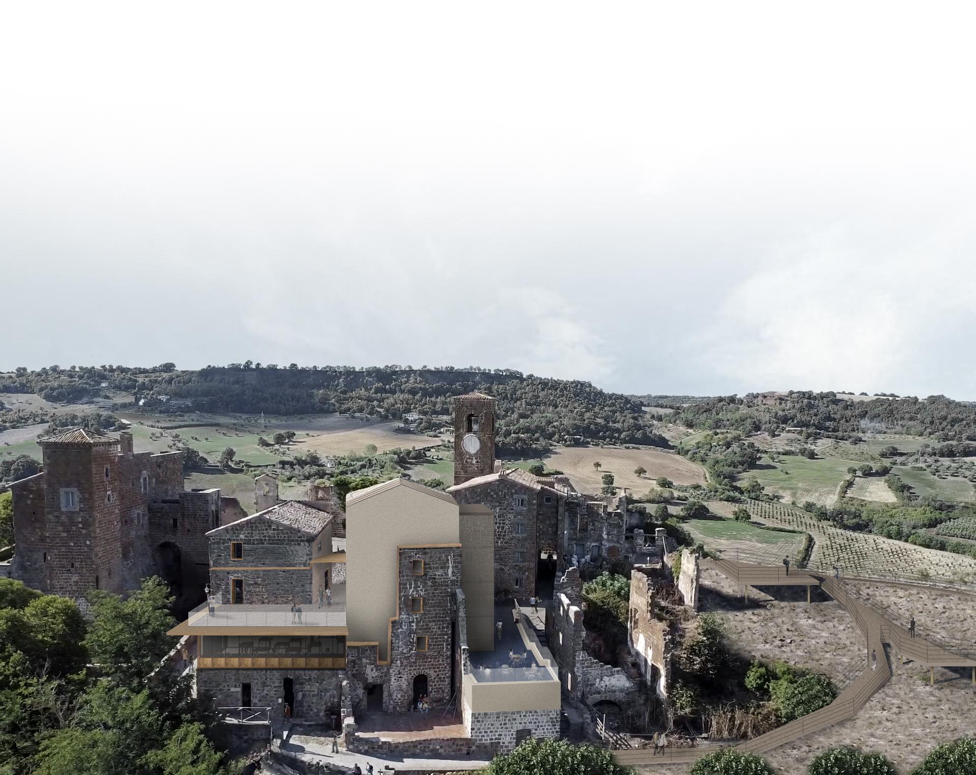 The project concerns the regeneration of the ghost town of Celleno to reuse the old core as a new cultural center that can become a dynamic meeting place where citizens will be the real protagonists. Existing buildings and new structures will intertwine to find a new balance in constant dialogue with the past. Following a sustainable and interdisciplinary approach, the project aims to achieve the 2030 and 2050 goals.