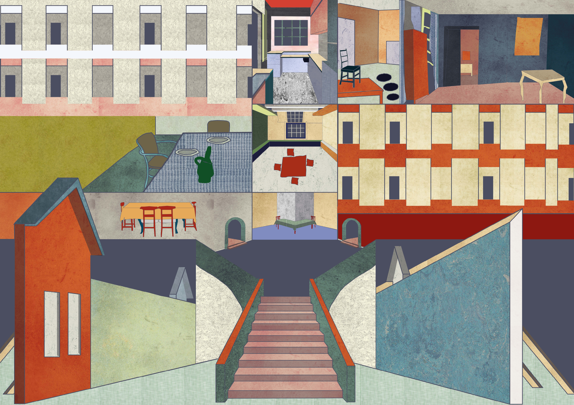 The intention of the project is to develop a design strategy able to provide the presence of a collective space when locating or planning an asylum seekers centre. There is the necessity to create a space where residents can also work since that right is sometimes denied even if it constitutes one of the main rights everyone should be entitled to have